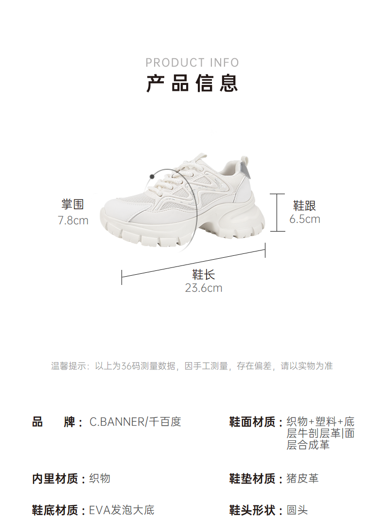 千百度厚底熊猫鞋女春季增高休闲板鞋黑白鞋时尚运动鞋A24113812