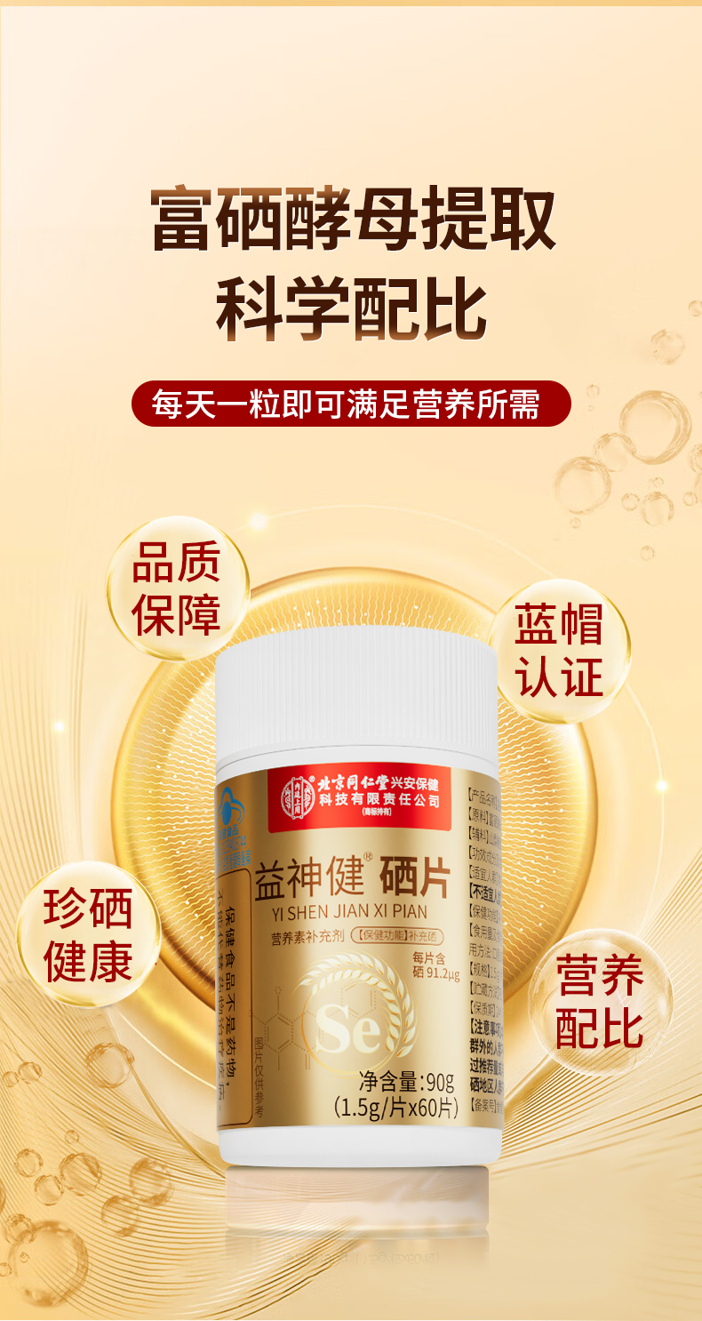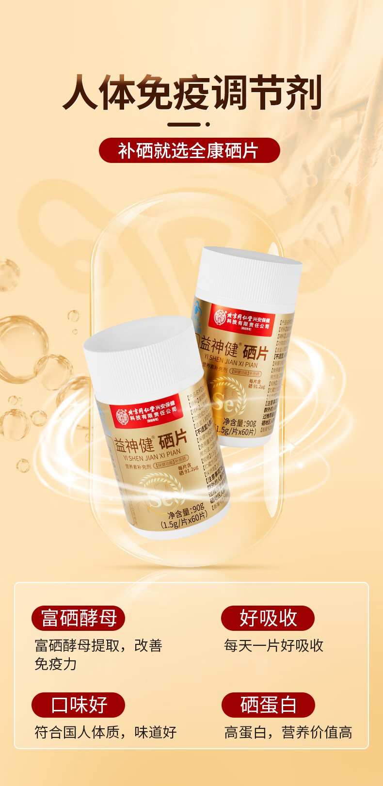 北京同仁堂 内廷上用 硒片 补硒 富硒酵母麦芽硒元素90g