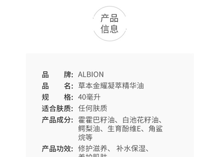 Albion/澳尔滨清新凝萃滋润保湿精华黄金护肤油40ml