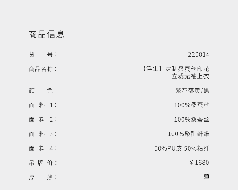 【浮生】品牌定制桑蚕丝印花立裁无袖上衣/220014