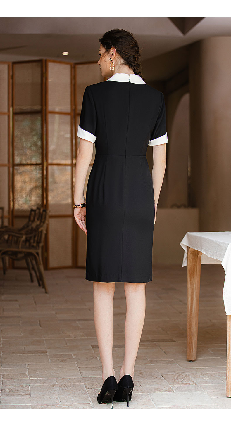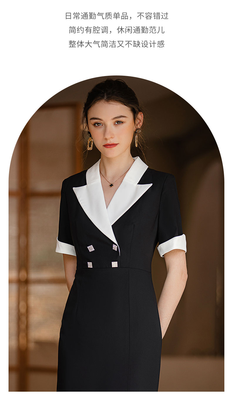IWY/高级感设计款黑色短袖西装连衣裙收腰显瘦大翻领商务接待工装Q957