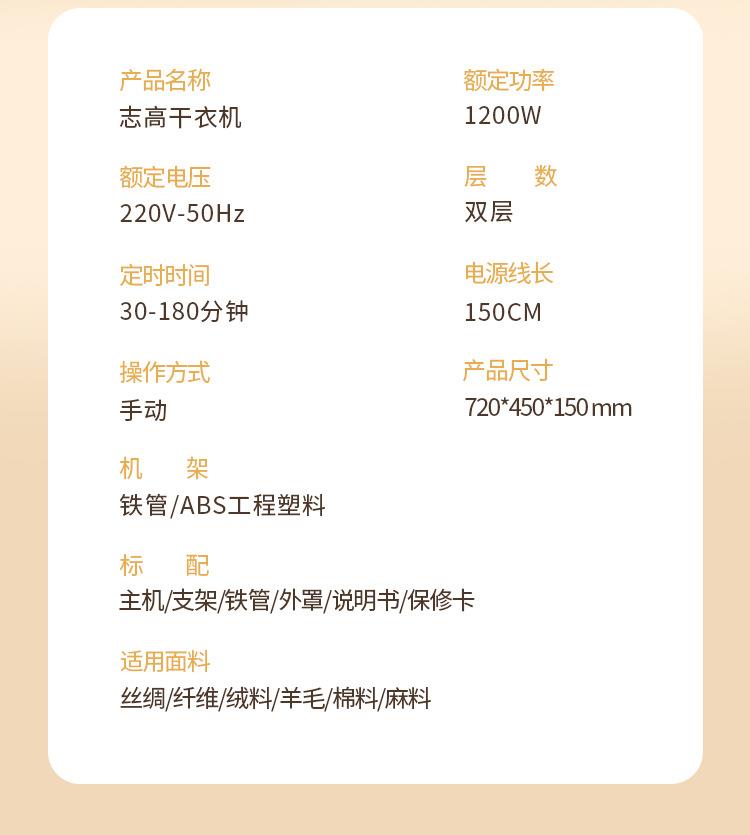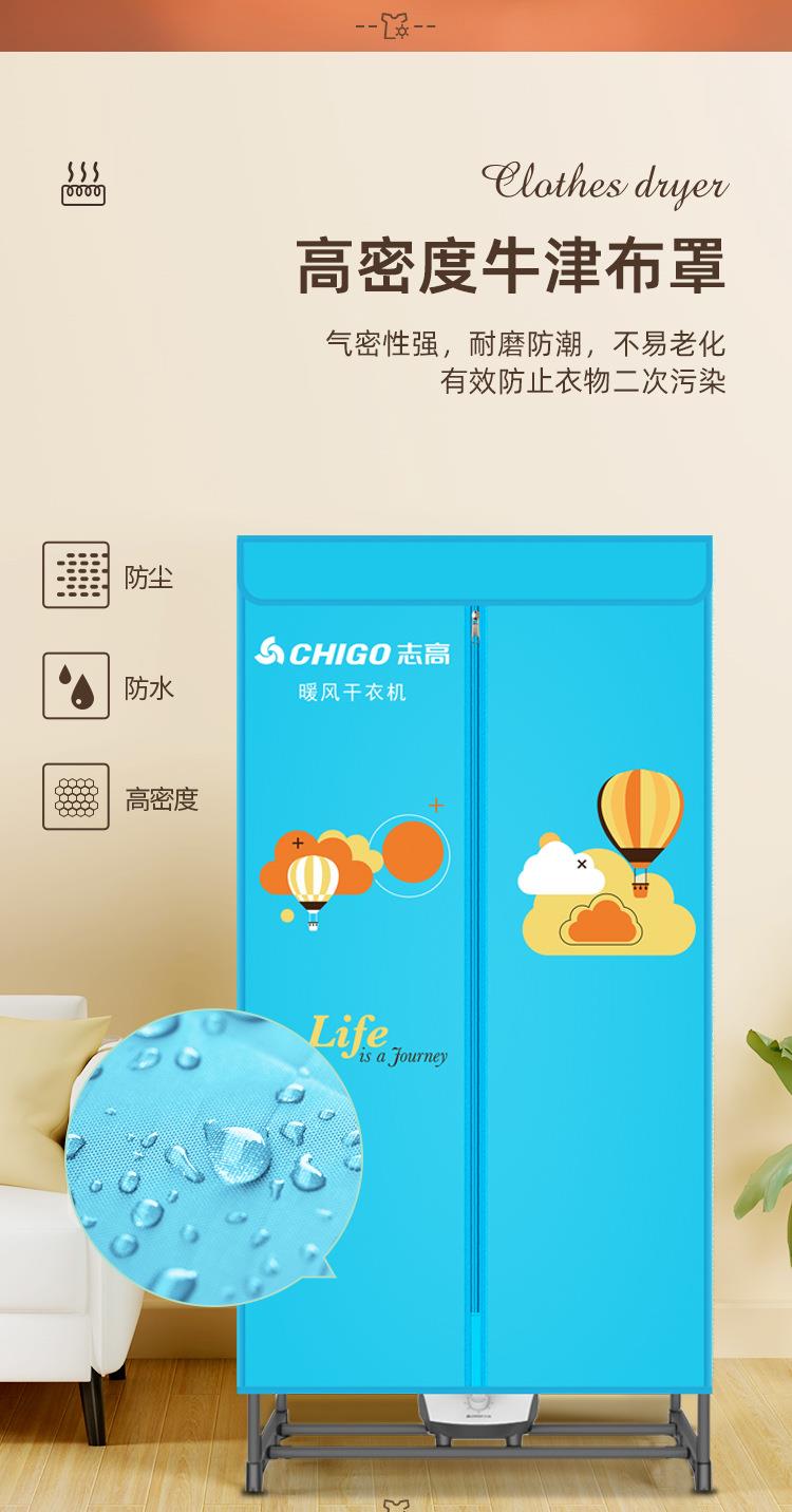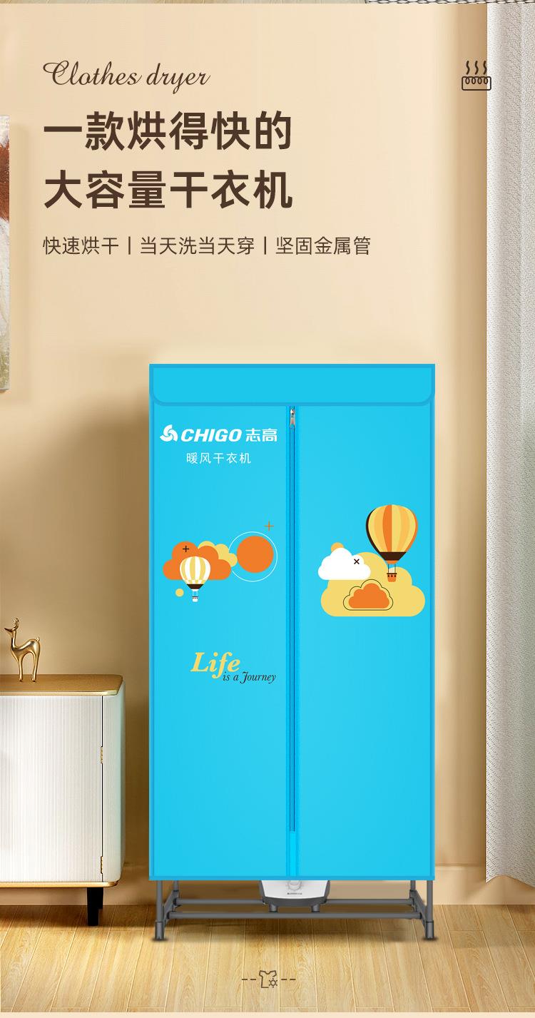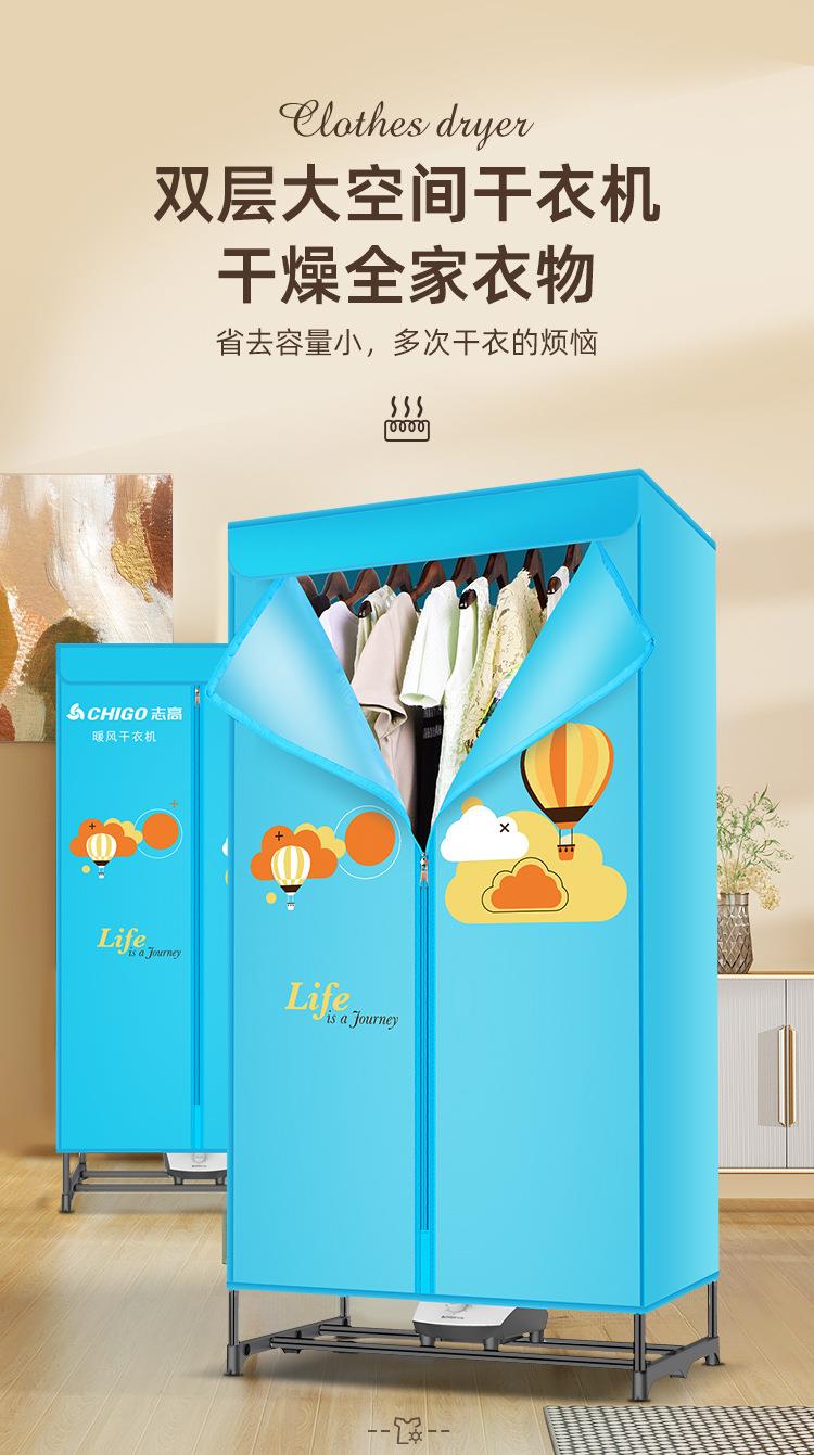 志高干衣机家用衣服烘干机不锈钢暖风速干机折叠静音双层
