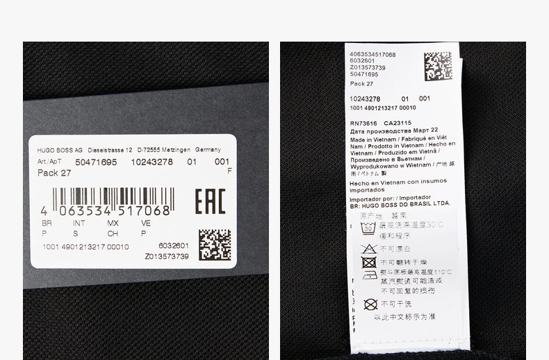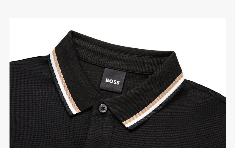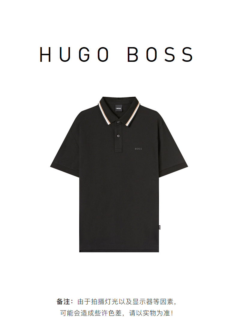 HUGO BOSS 雨果博斯 2023春夏新品 男士LOGO徽标短袖POLO衫 黑色