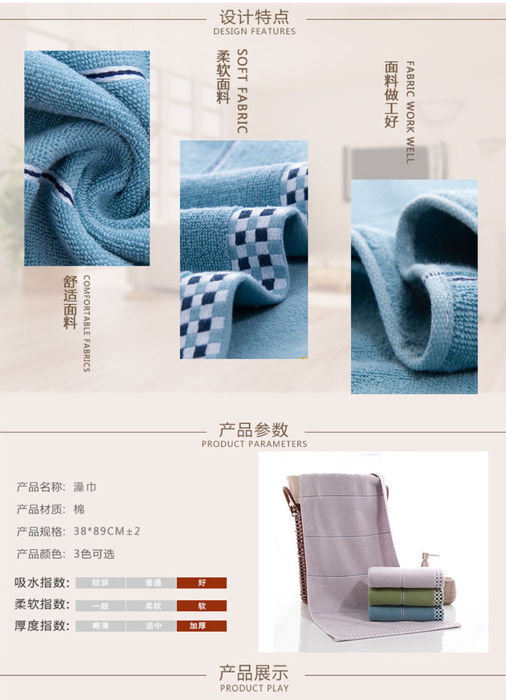 【毛巾】*纯棉股纱方块澡巾 加宽加长运动吸汗大毛巾