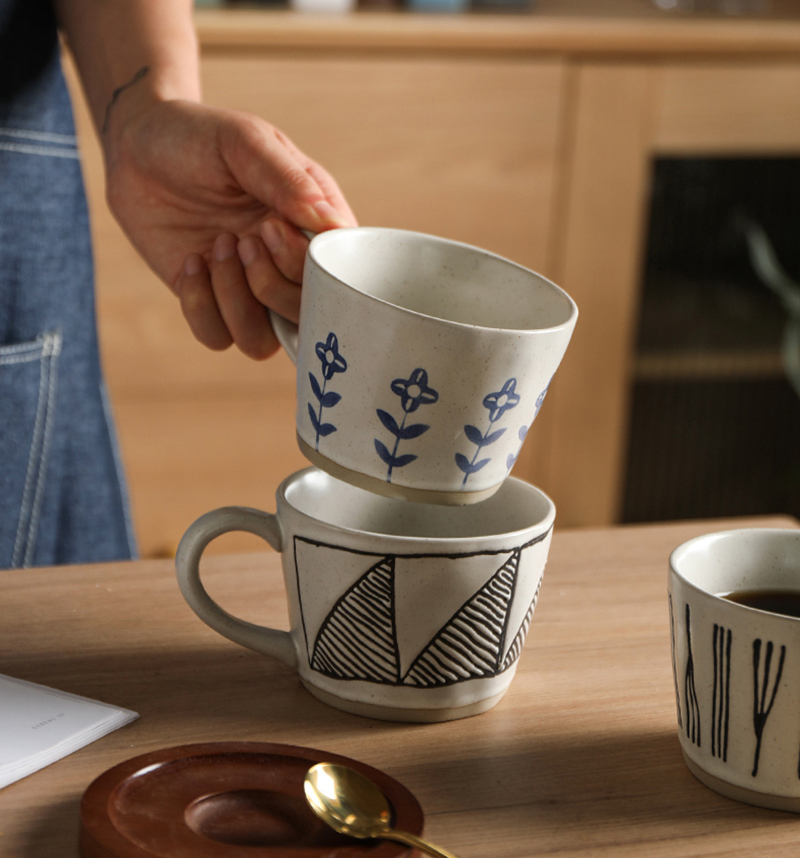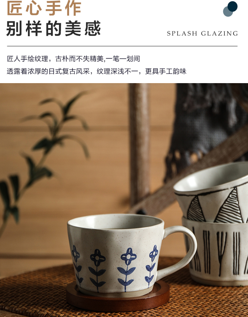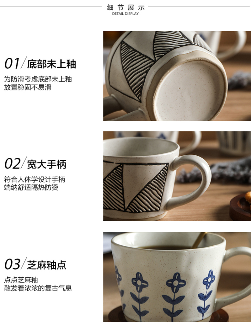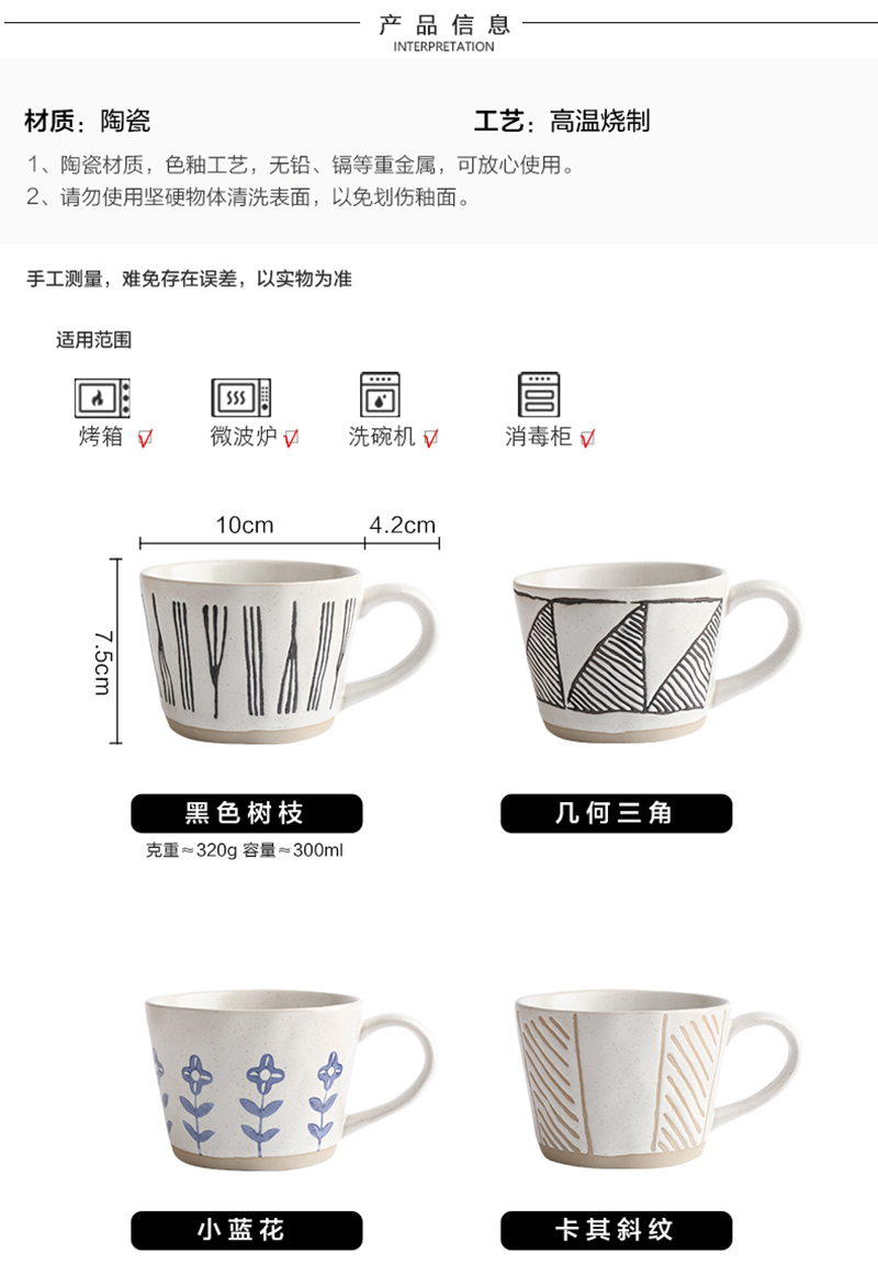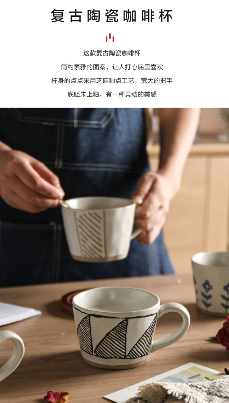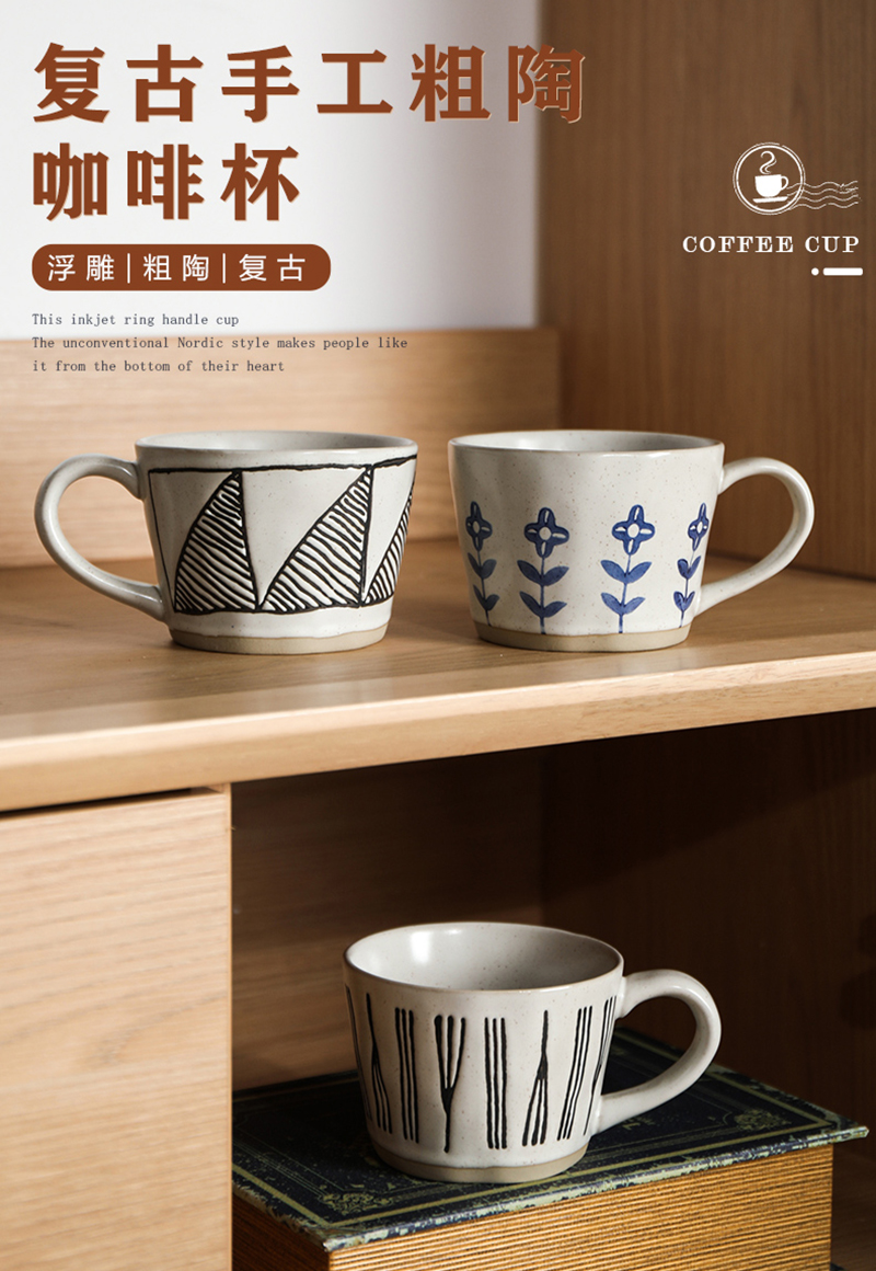 【品名】复古手工粗陶杯(2只装)(300ml)