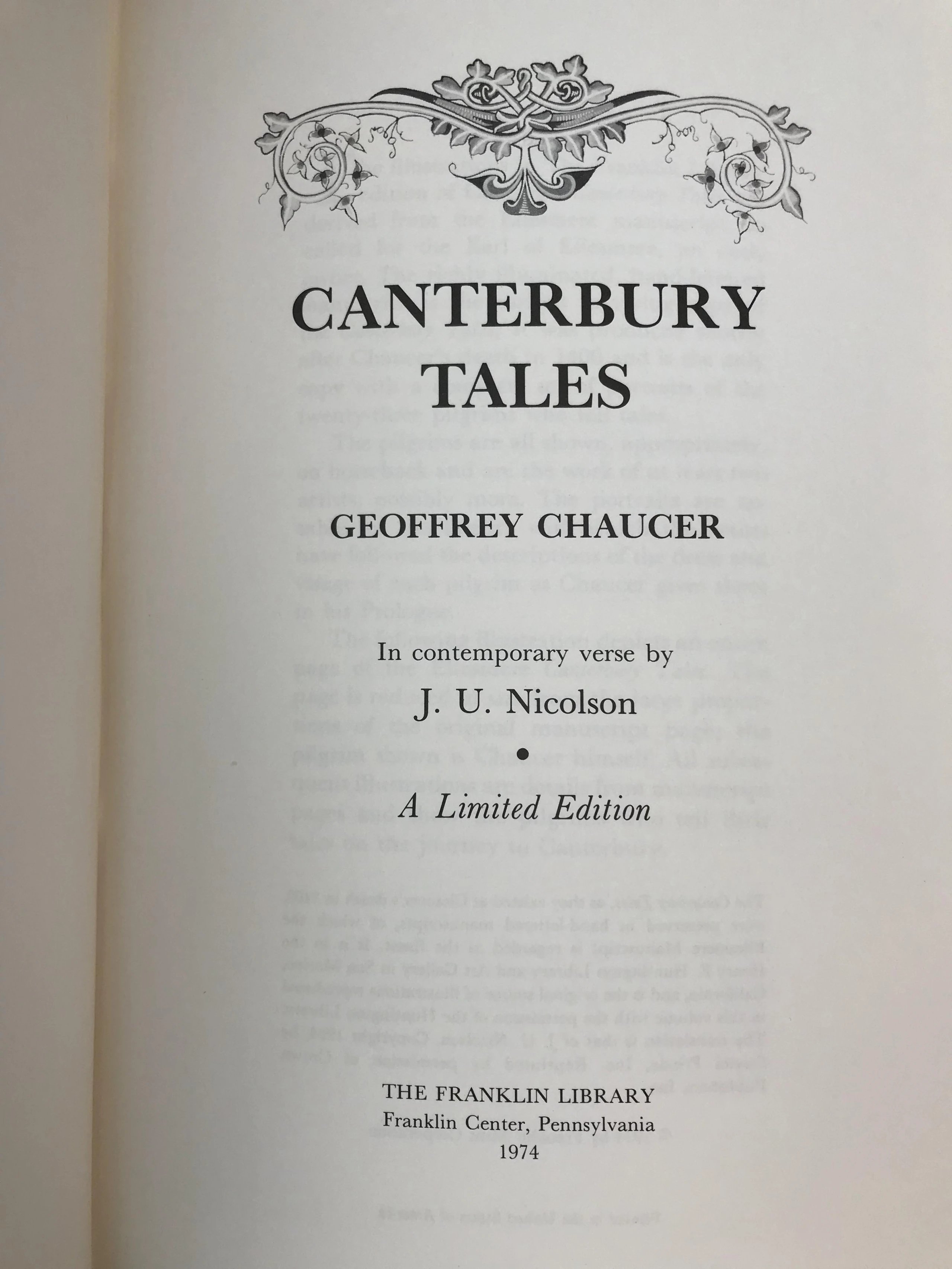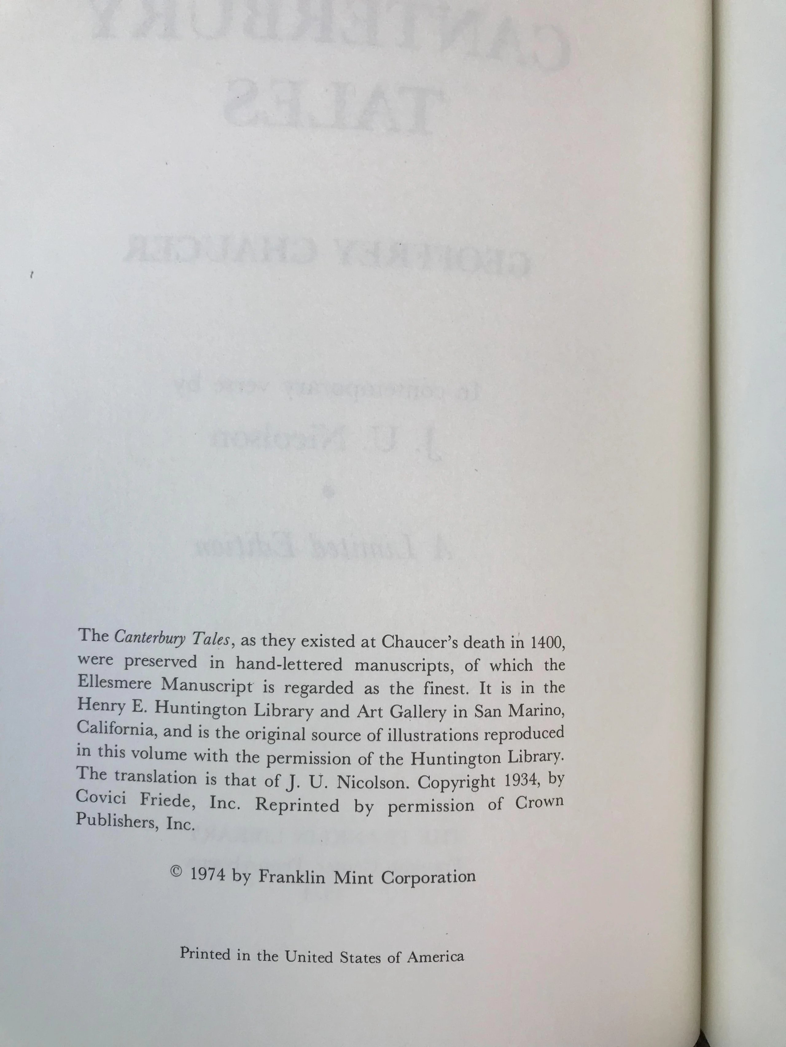 限量版!含藏书票 杰弗里・乔叟《坎特伯雷故事集》 配插图 富兰克林图书馆豪华皮装本