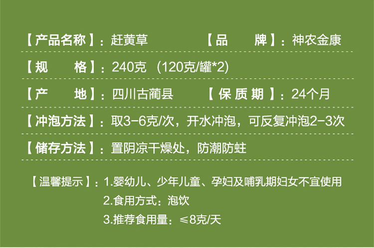 神农金康 赶黄草240g 四川古蔺正品秋黄草叶 原生态真滋补 喝护家人健康
