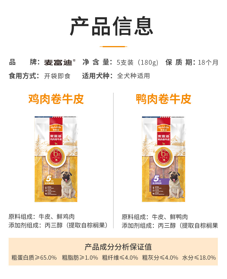麦富迪狗狗零食宠物磨牙棒鸡肉卷牛皮