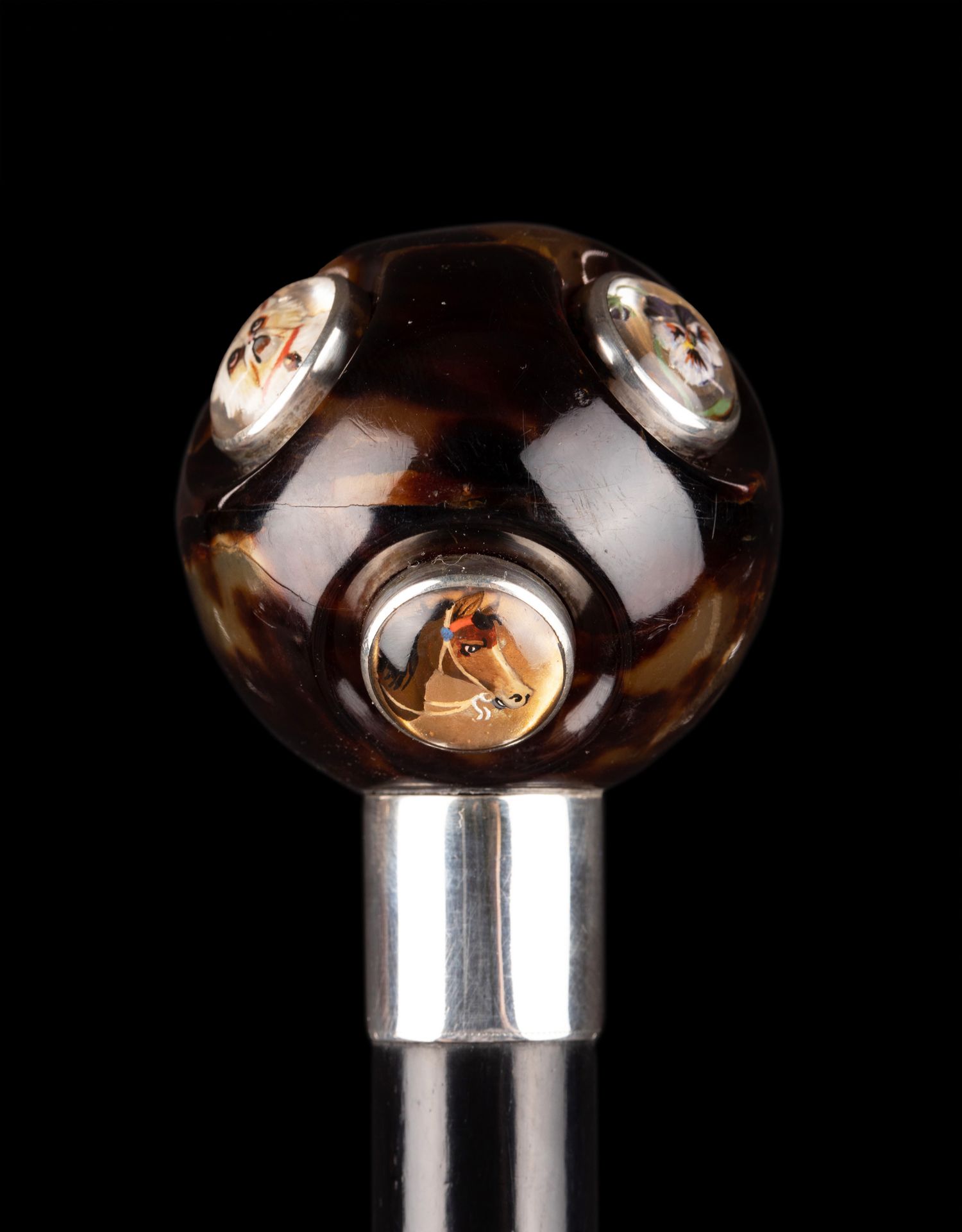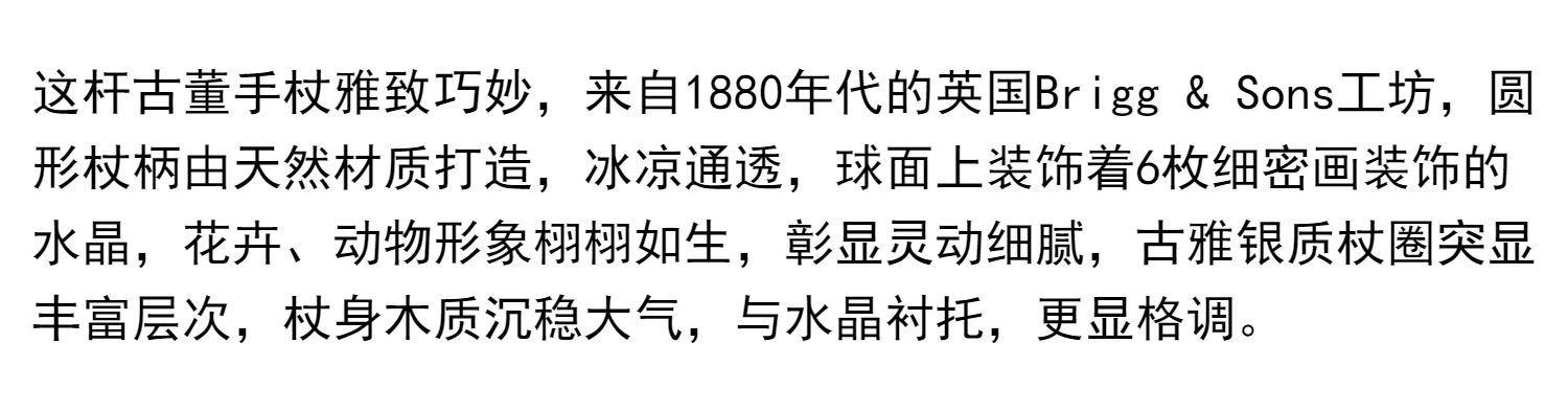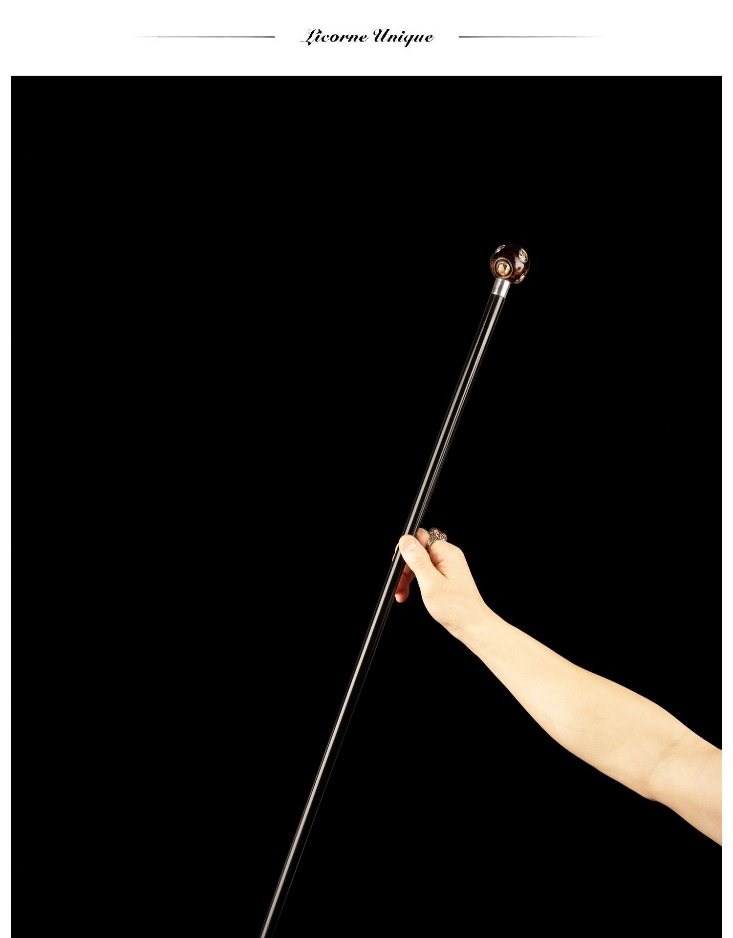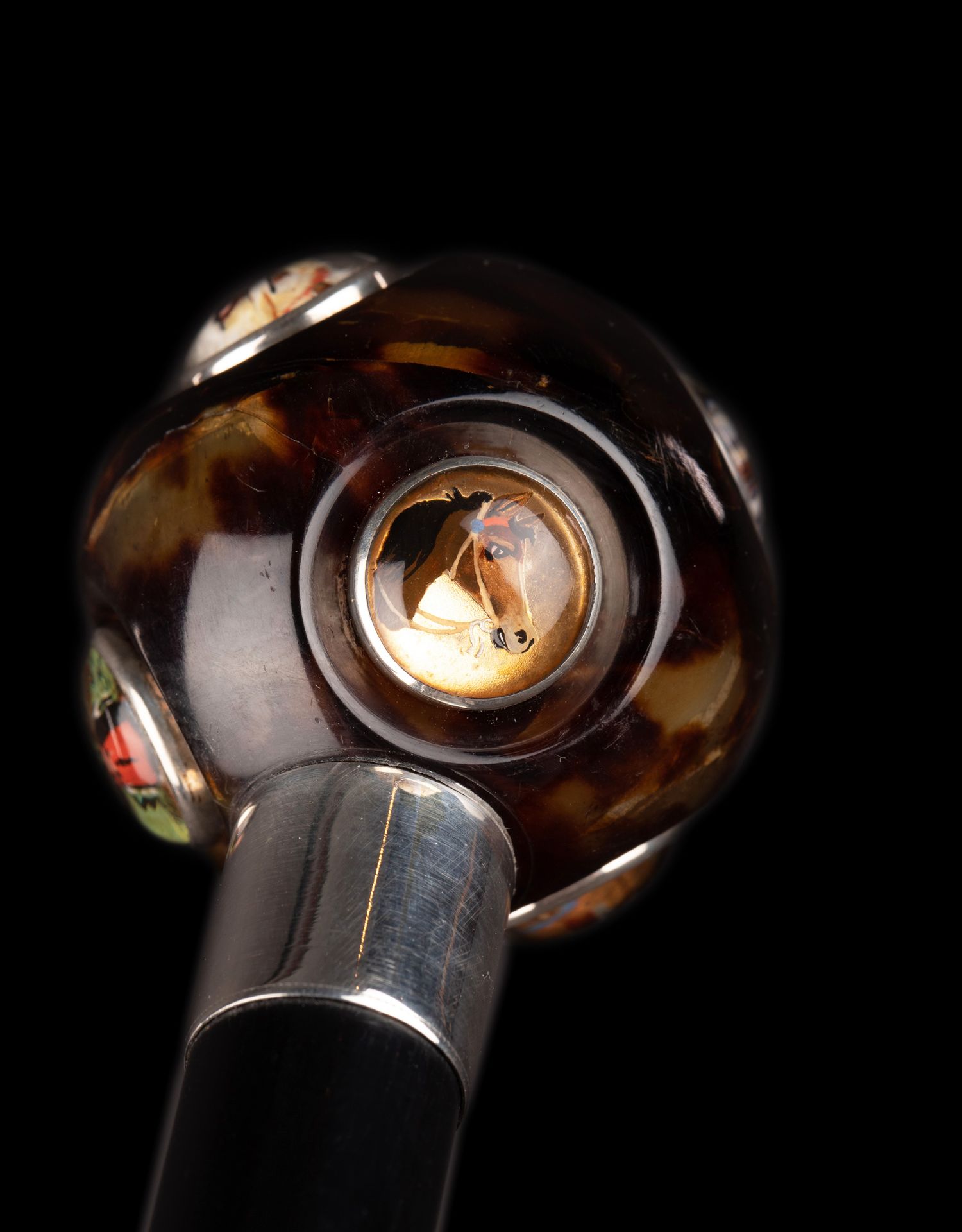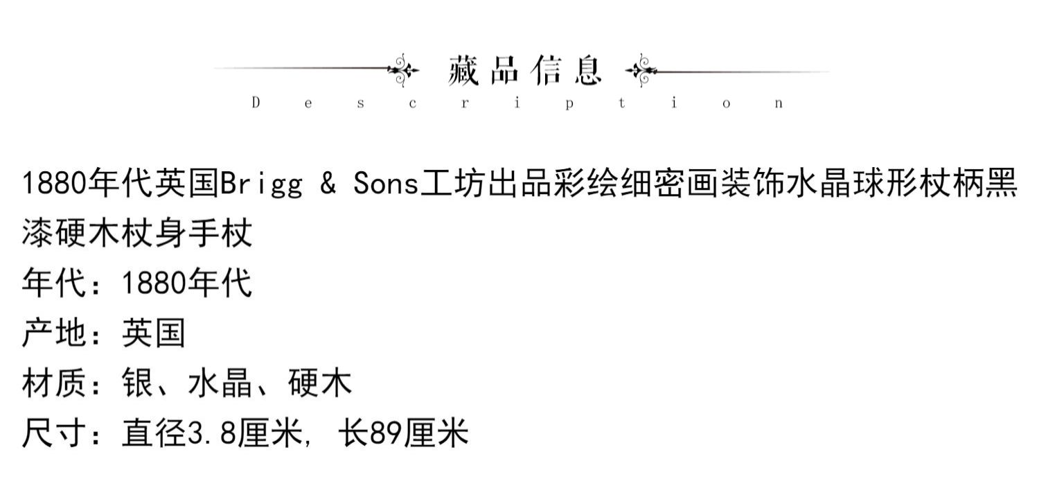 独角鹿西洋古董英国彩绘细密画装饰水晶球形杖柄黑漆硬木杖身手杖