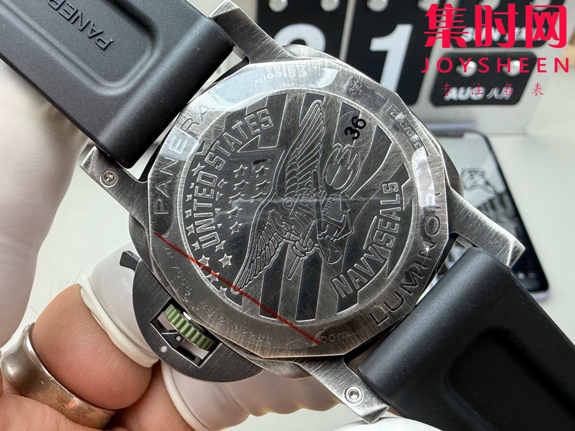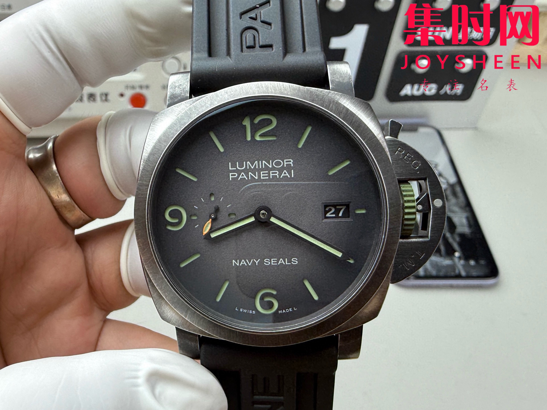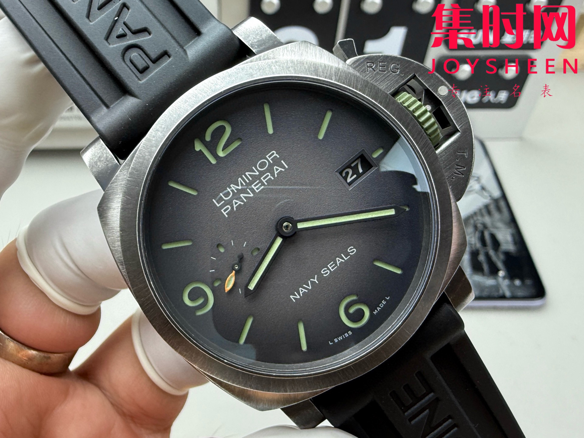 VS沛纳海PAM01412 庐米诺系列PAM1412 男士腕表 DIW定制 表径44mm 做旧表壳搭配黑色天然橡胶表带,蓝宝石水晶玻璃。灰黑色渐变表盘,配搭夜光圆点和时标。3点钟位置设日期显示,9点钟位置设小秒盘。搭载VS定制Cal.P.9010型一体全自动机械机芯,表盘尺寸:44毫米
