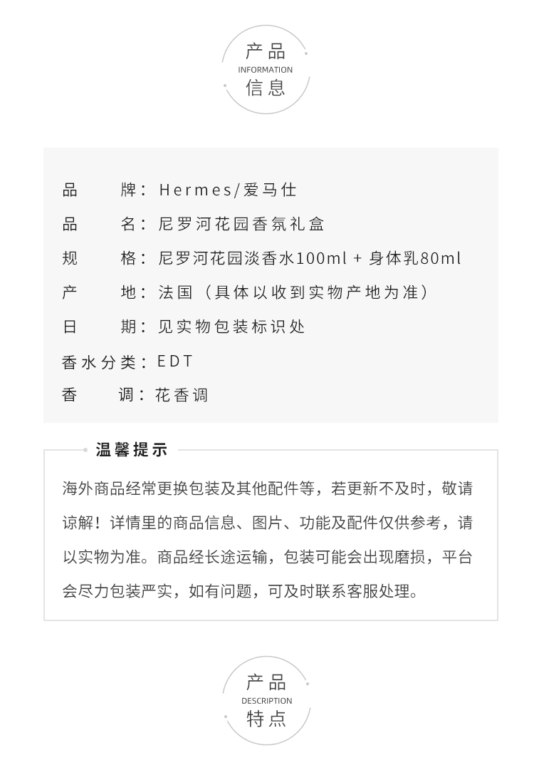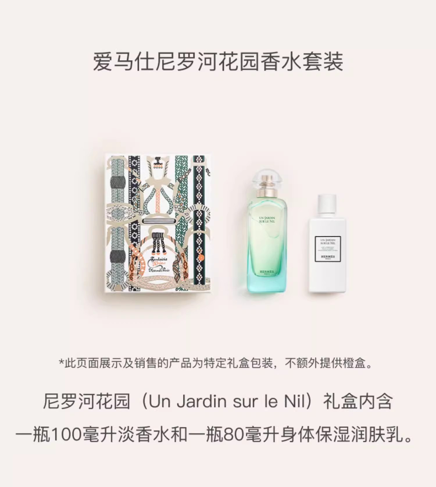 爱马仕尼罗河花园香水两件套 香水100ml+身体乳80ml 情人节礼物/七夕礼物/新年礼物