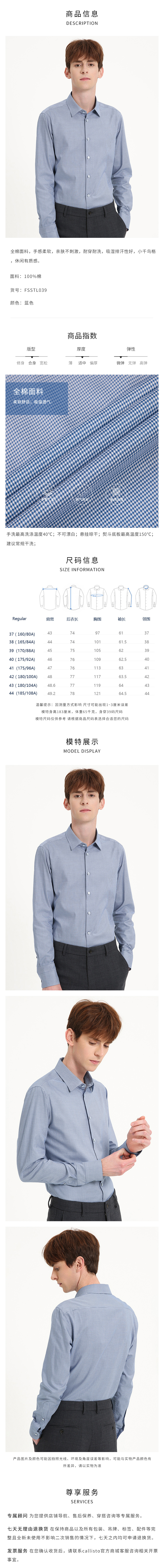 callisto蓝色千鸟格全棉长袖衬衫 FSSTL039Y BL
