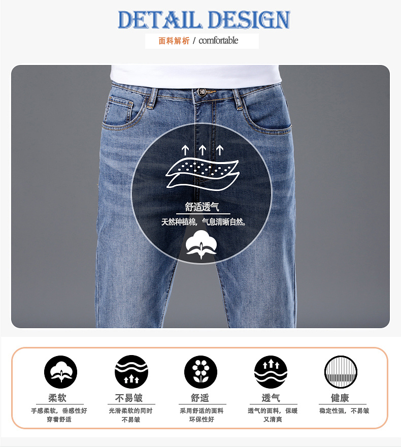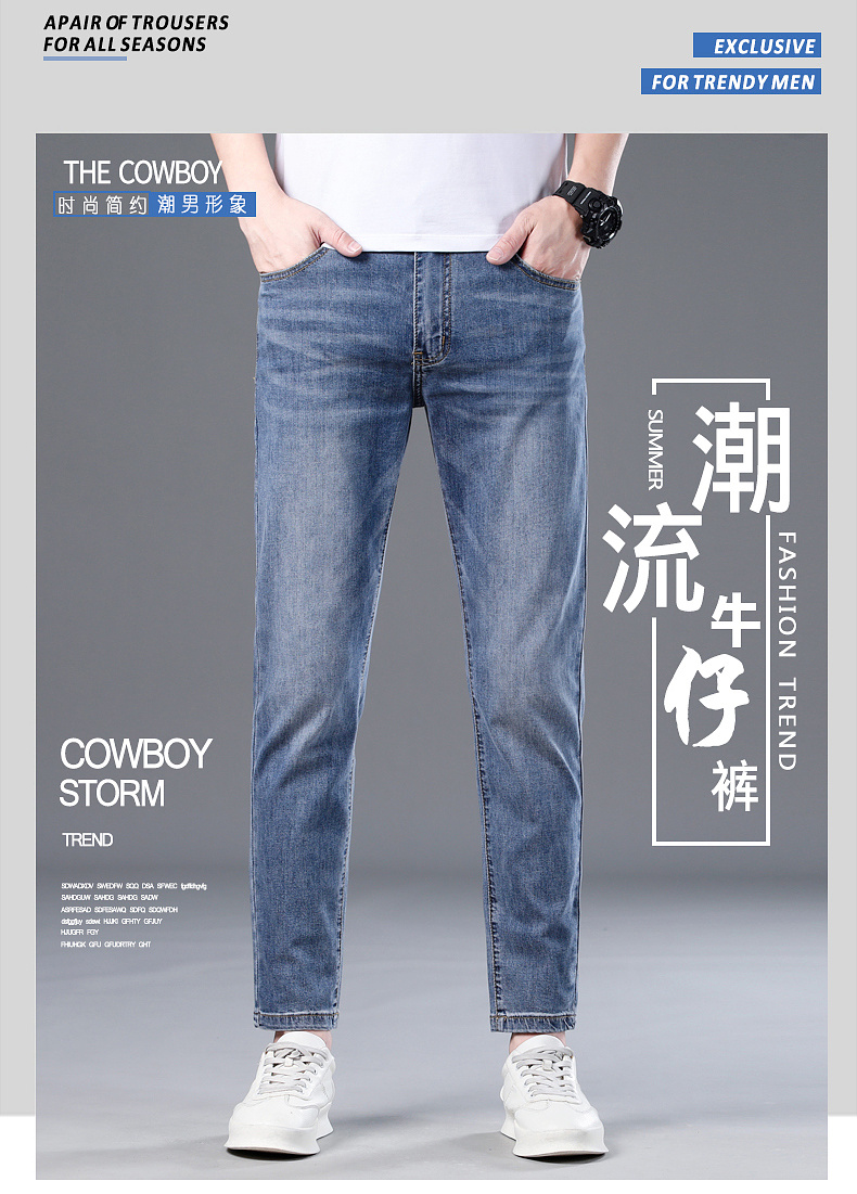 【含莱赛尔】圣得西男士长裤2025年春夏新款修身薄款休闲牛仔裤男2512915061
