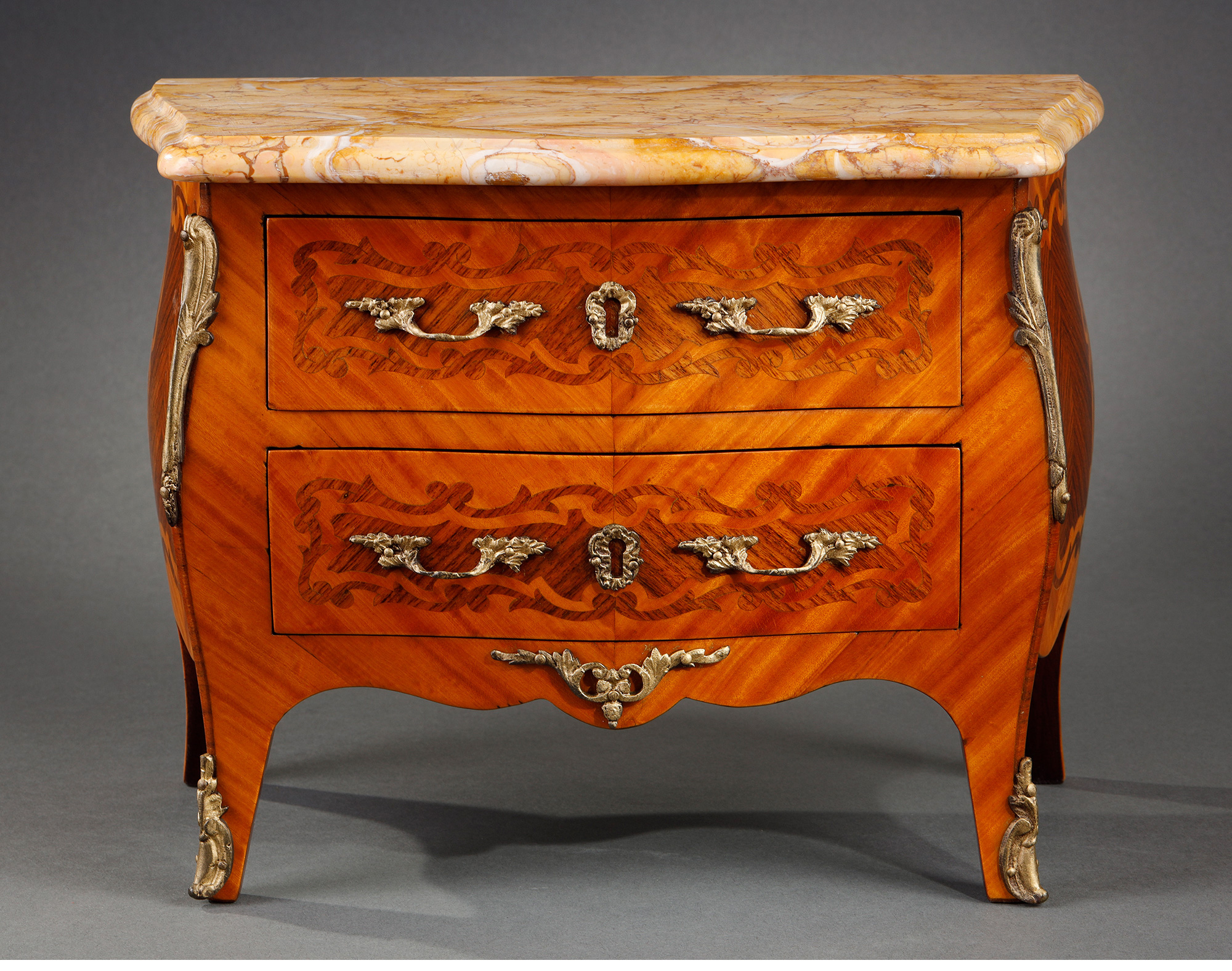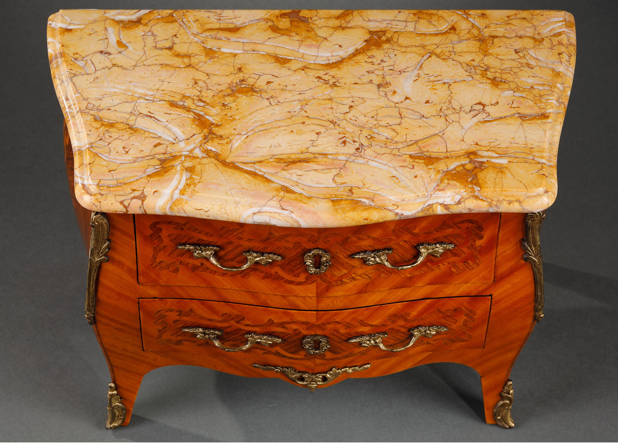 独角鹿西洋古董路易十五风格铜鎏金修饰大理石台面微缩双屉斗柜