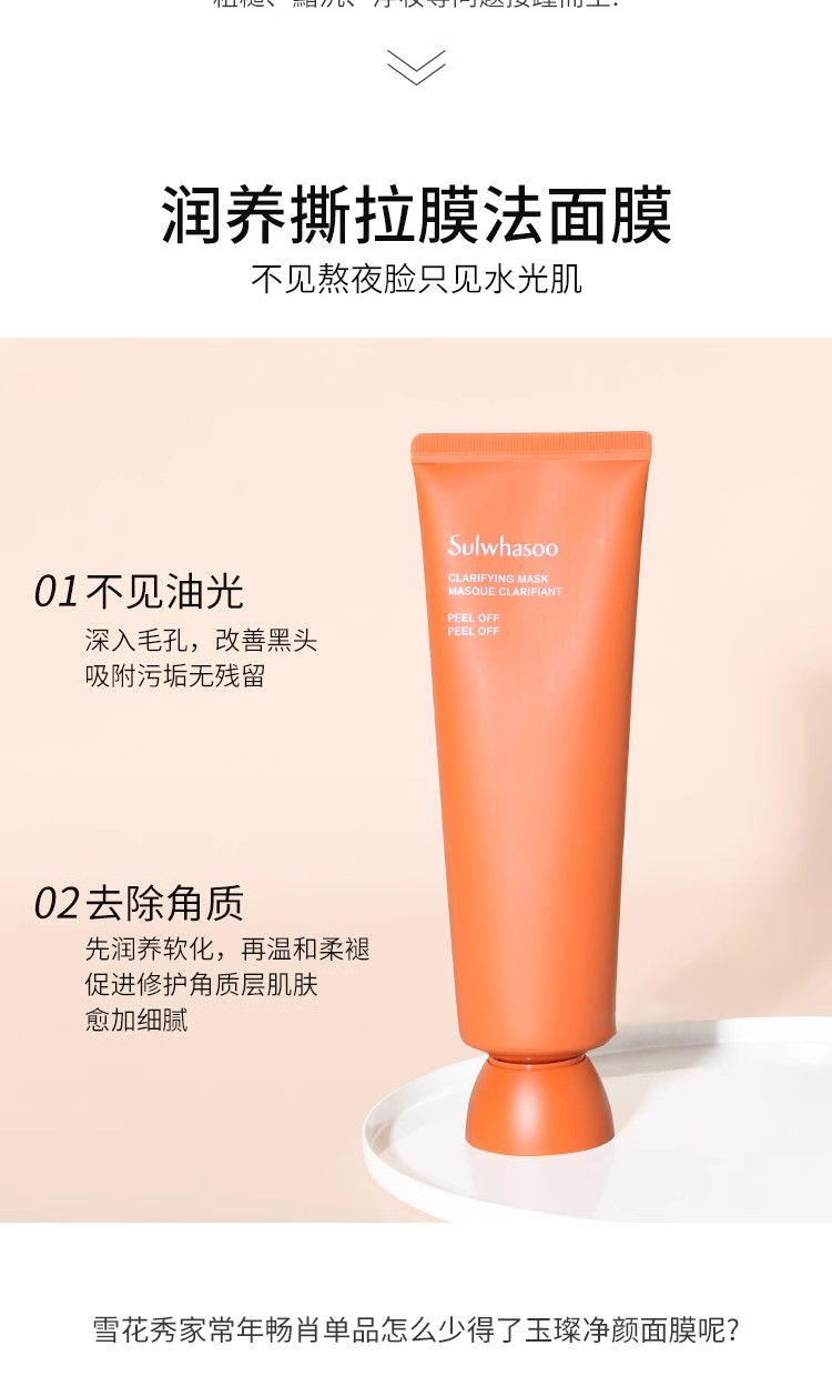 雪花秀玉璨净颜撕拉面膜深层清洁去角质去黑头粉刺120ml
