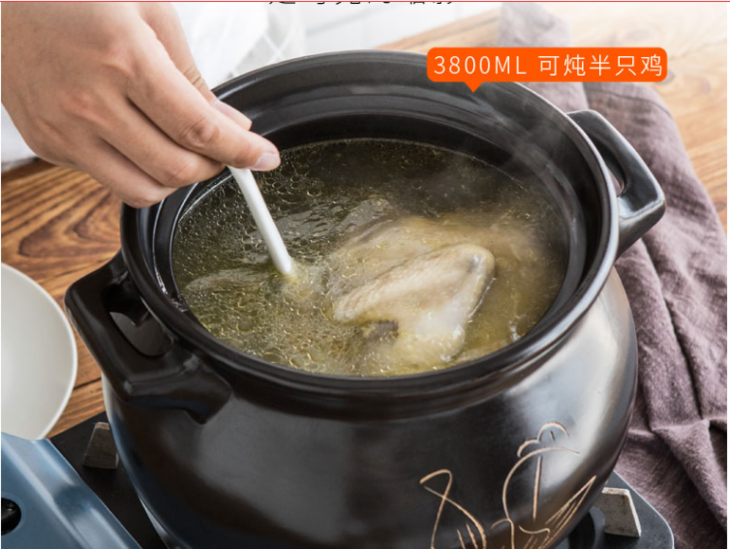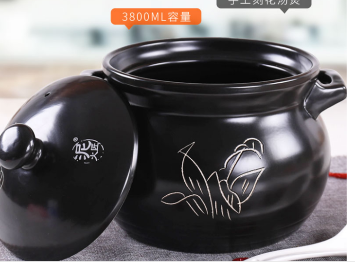两张魅力红酒卡+陶瓷 3800ml 刻花汤煲(黑色) 耐热砂锅炖锅汤锅(明火使用)-CG