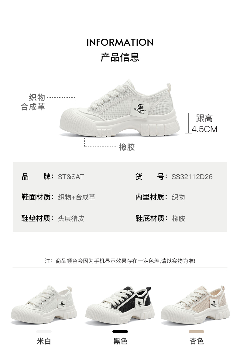 星期六经典百搭厚底亮钻小白鞋SSD1112C2E