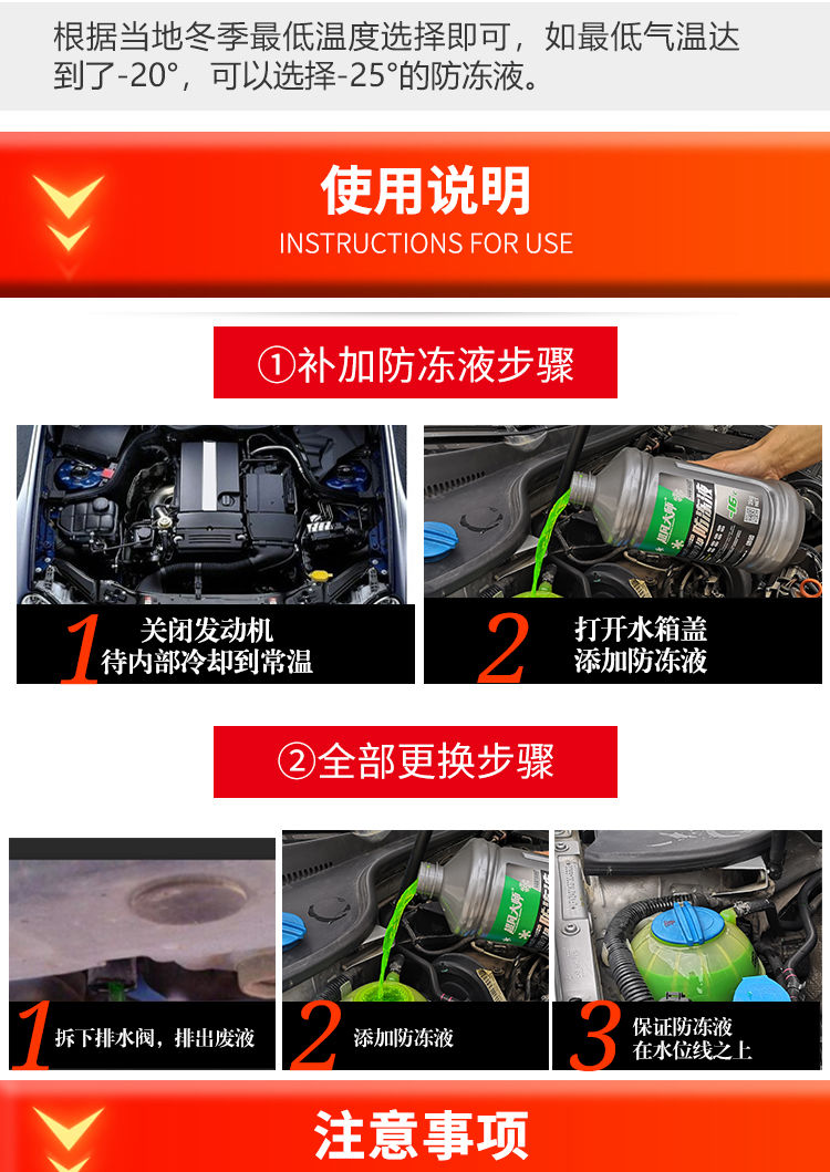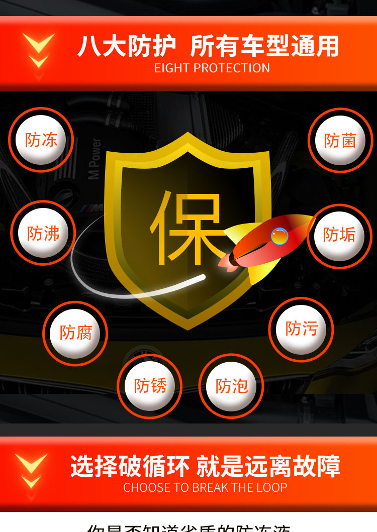 汽车防冻液冬季发动机冷却液水箱宝红色绿色四季通用长效