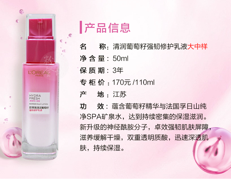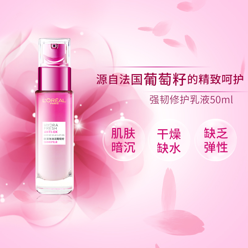 欧莱雅清润葡萄籽强韧修护乳液50ml(促销品) 买一送一