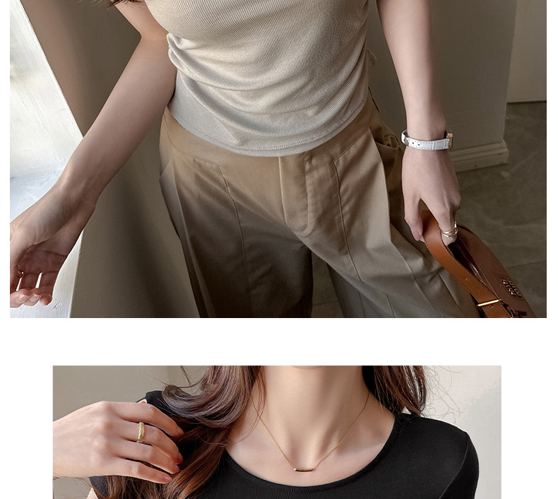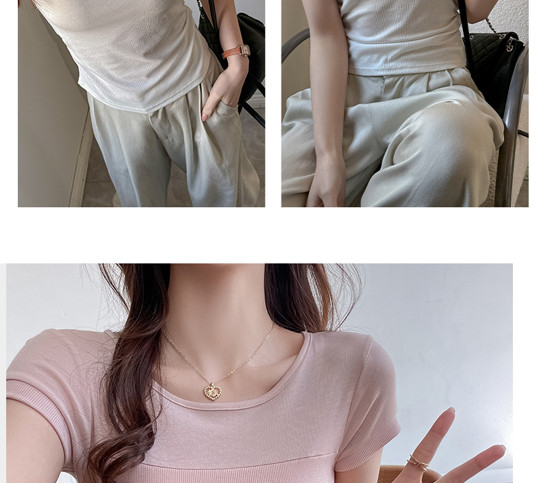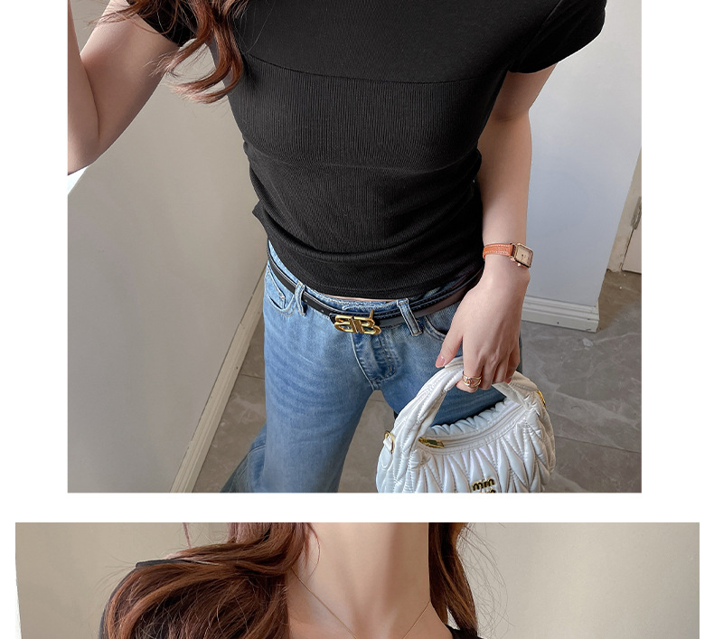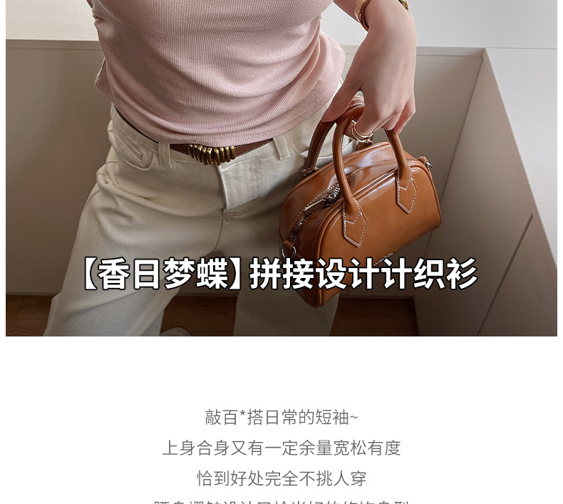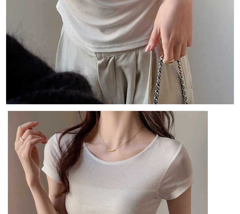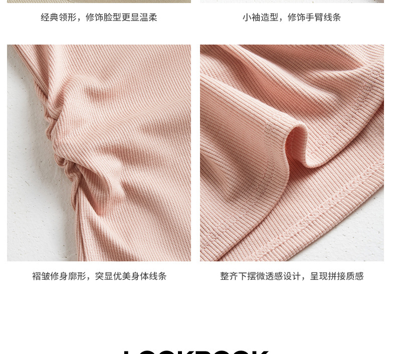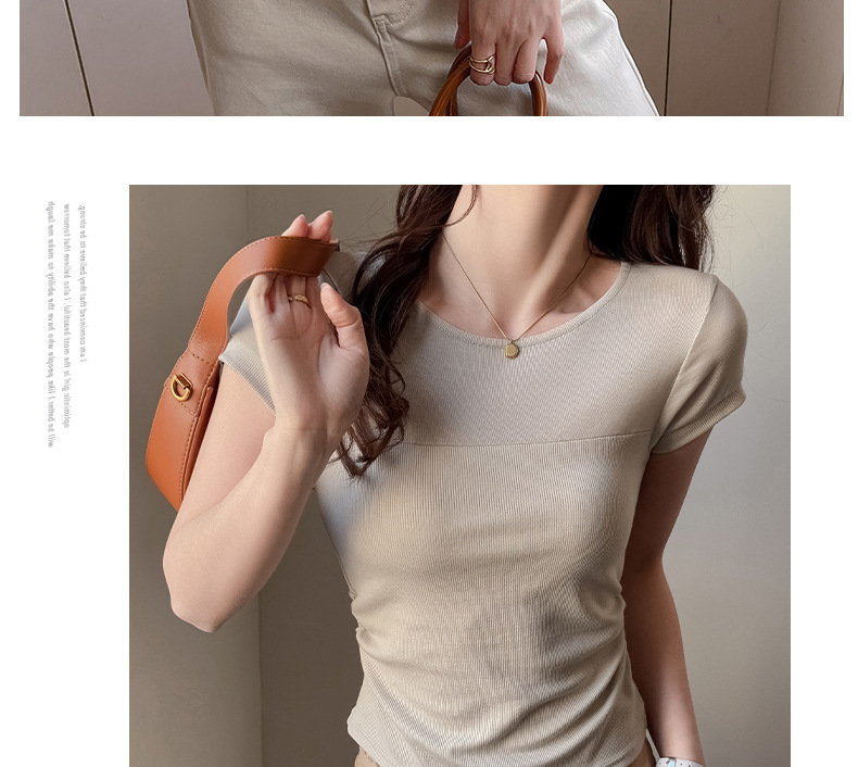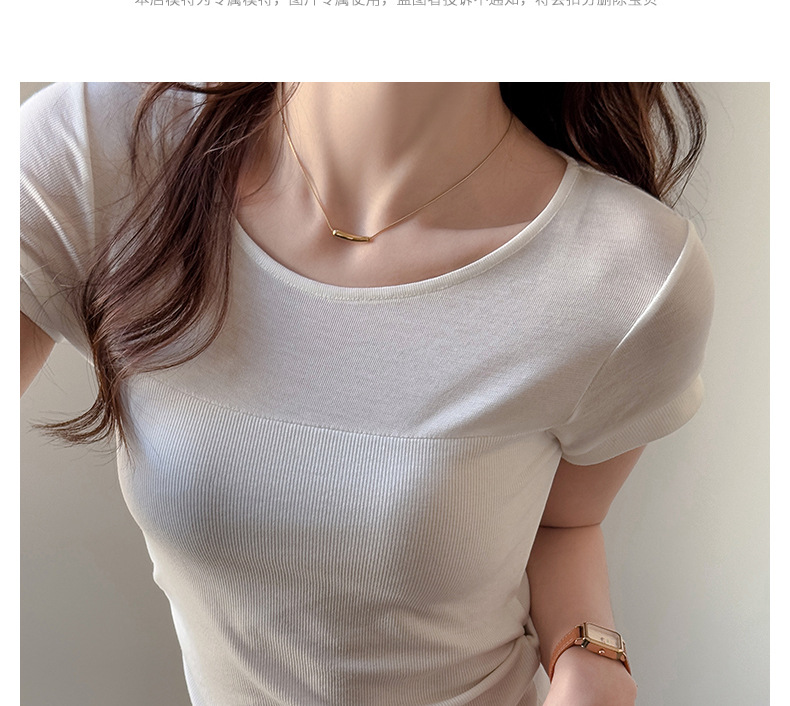 ✨莱赛尔天丝韩系女装【小圆领正肩t恤】女短袖高级拼接收腰设计感上衣