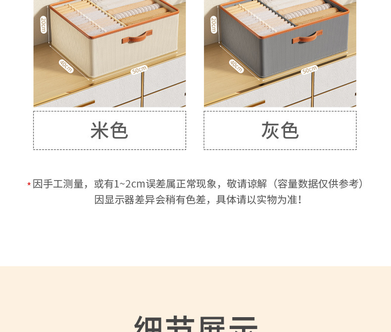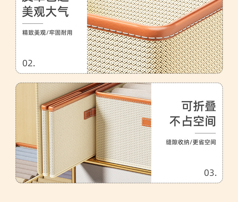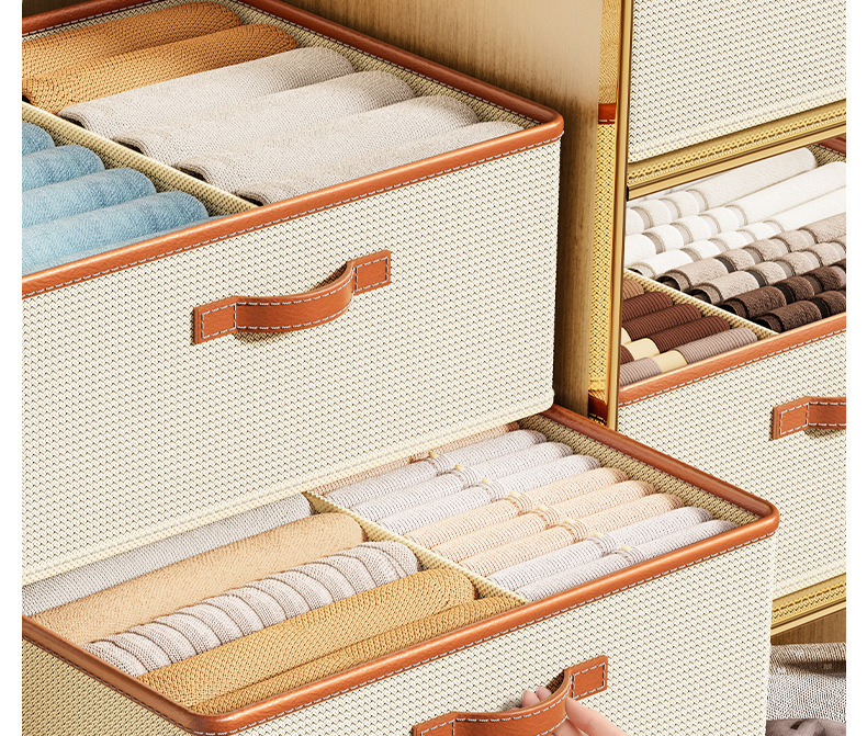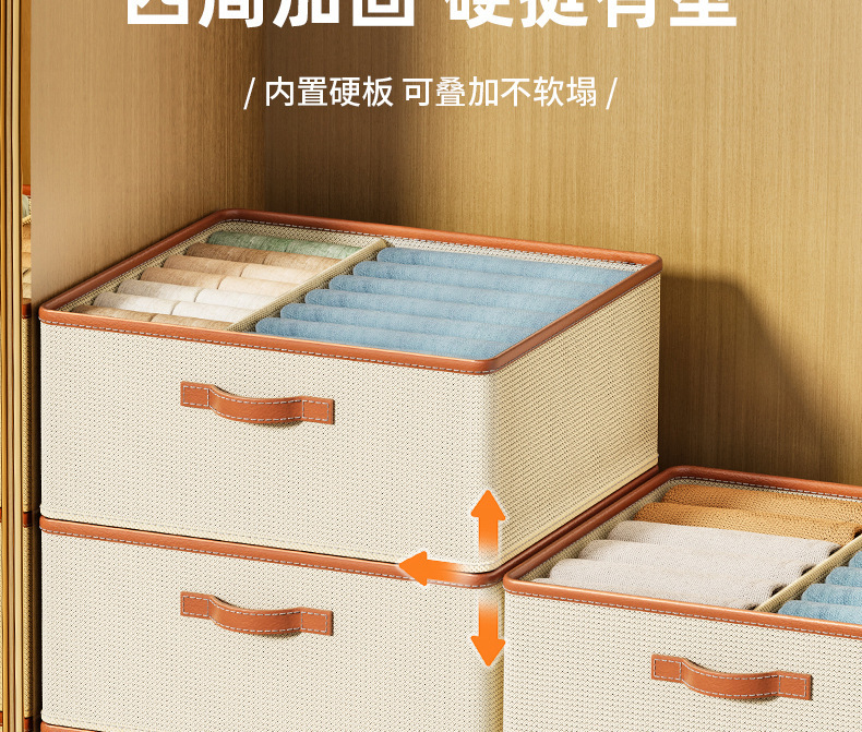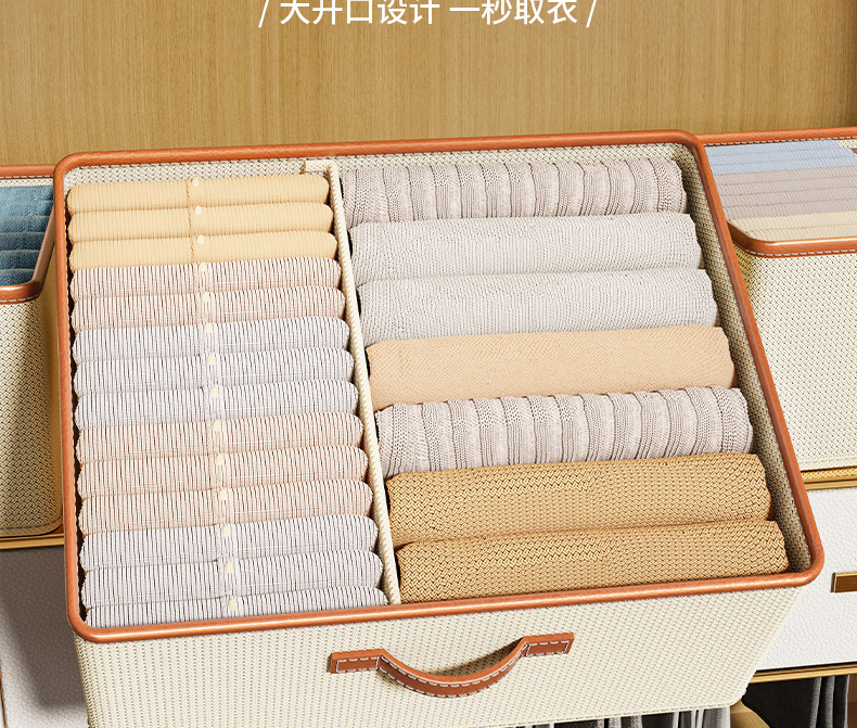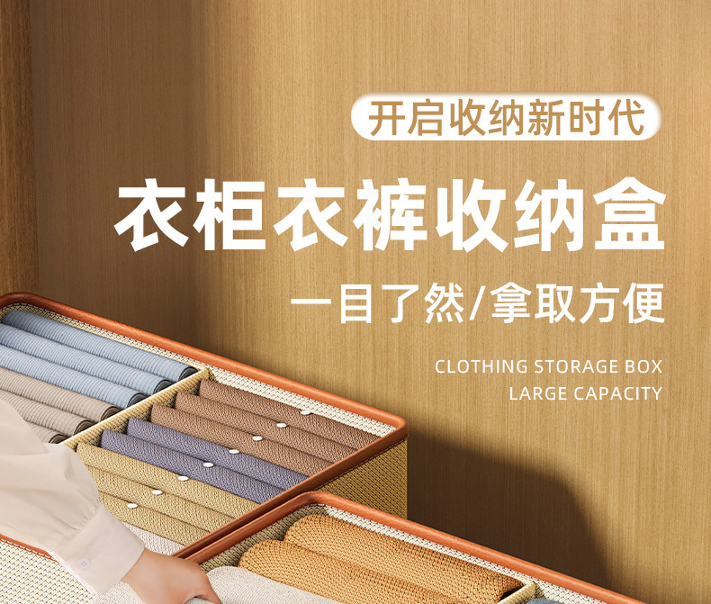 【1秒快速切换3隔板】ZJ家用衣柜衣裤收纳盒 PU把手 质量好 拿取一目了然 可折叠省空间