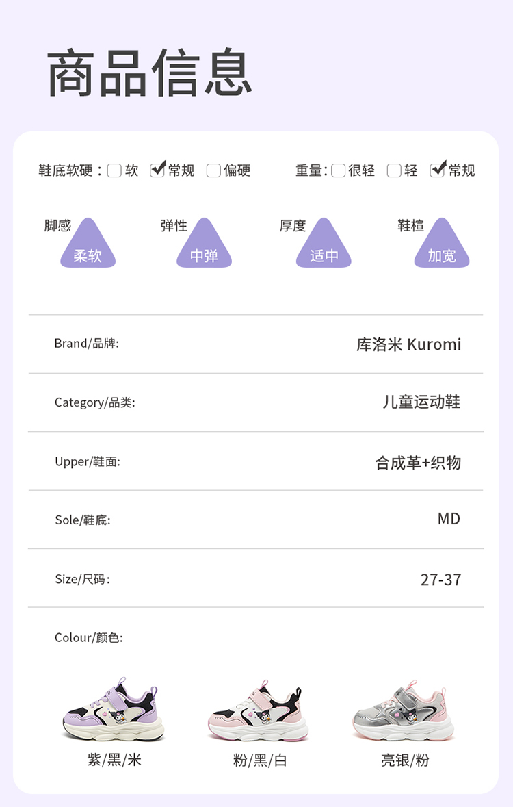 hellokitty童鞋春秋库洛米儿童运动鞋27-37码 KU5536903