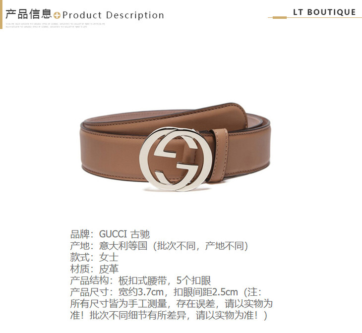 GUCCI 古驰 女士皮革互扣式 G 腰带 卡其色 370543 AP00G 2754