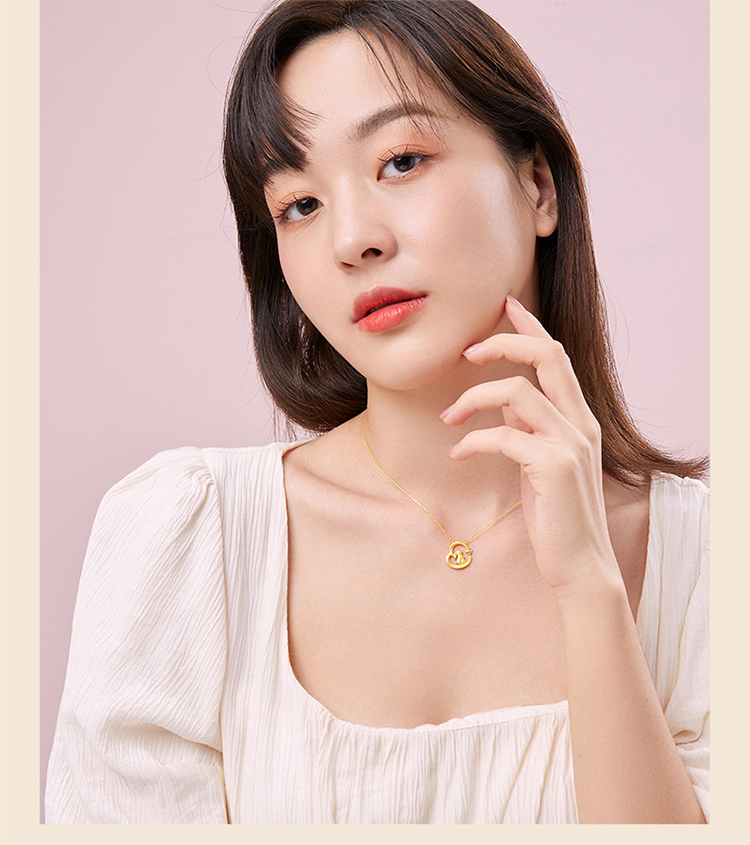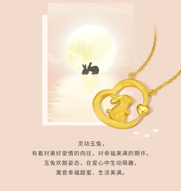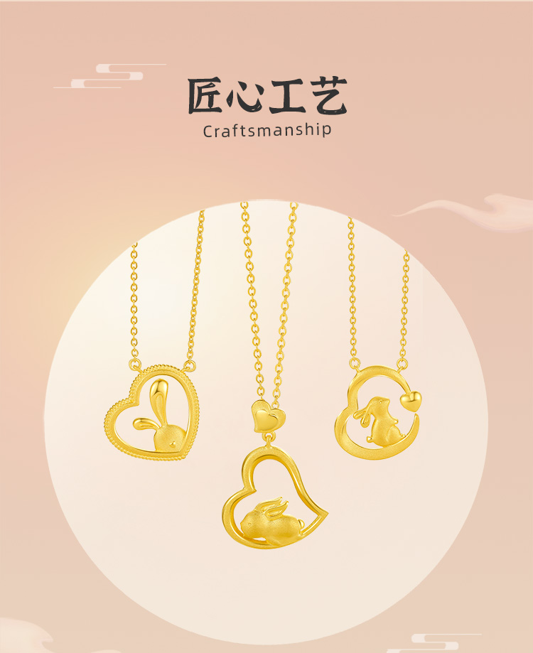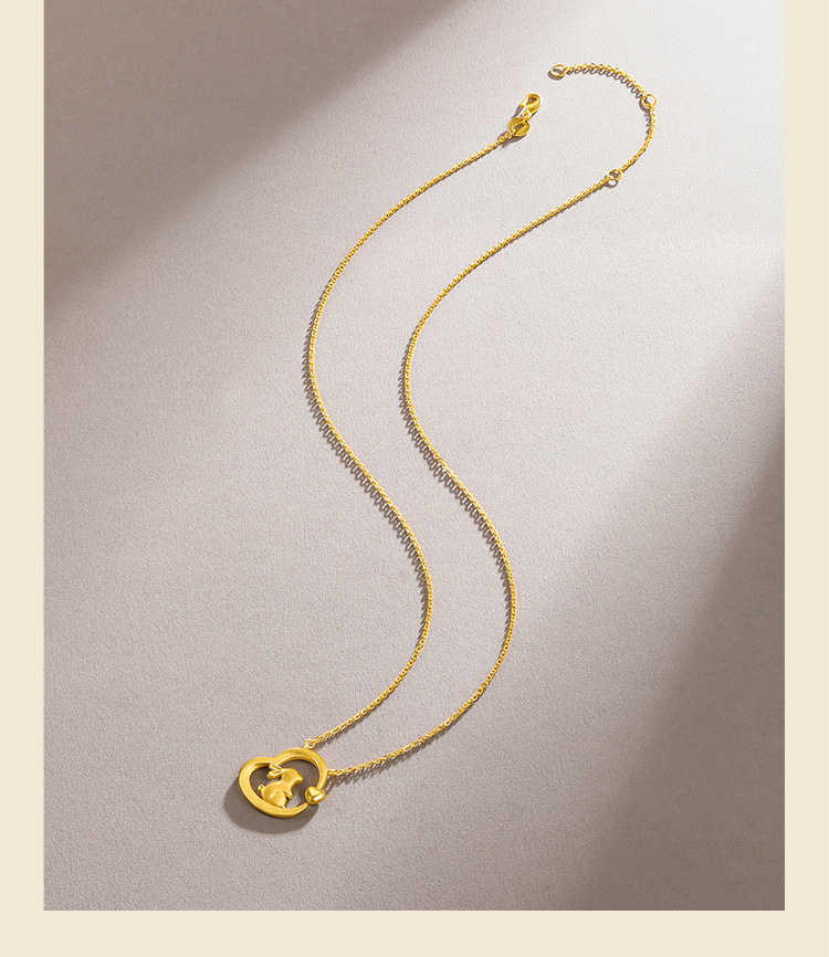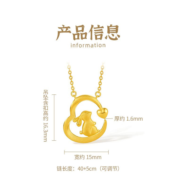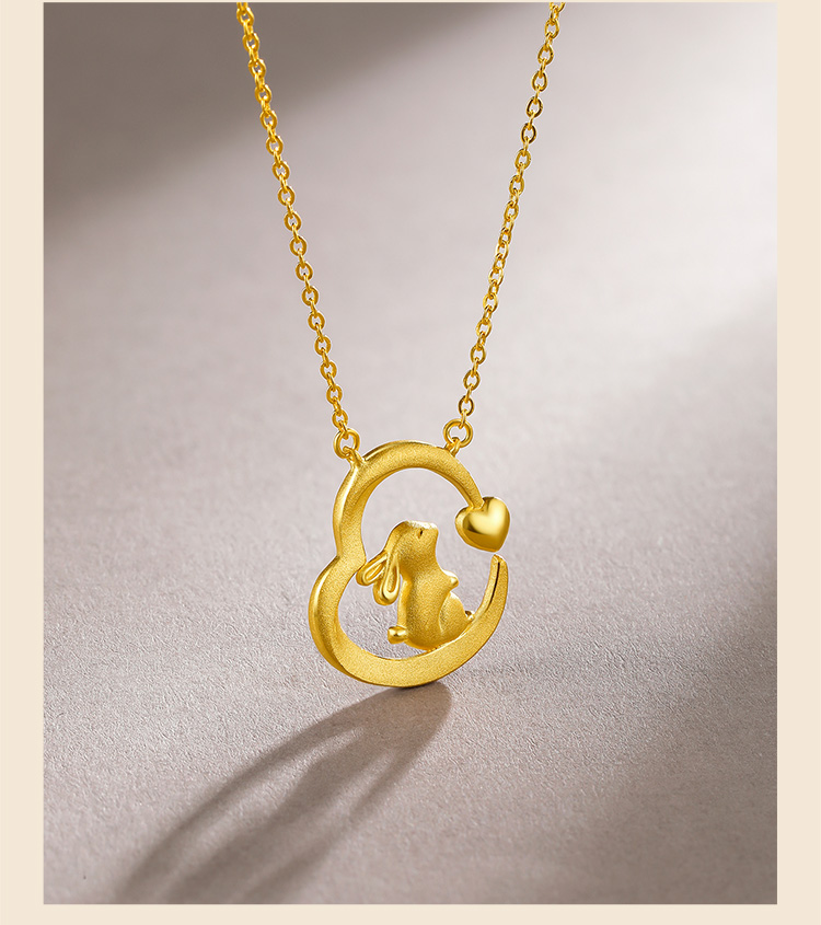周六福黄金项链女计价足金爱心兔子吊坠锁骨链送女友礼物