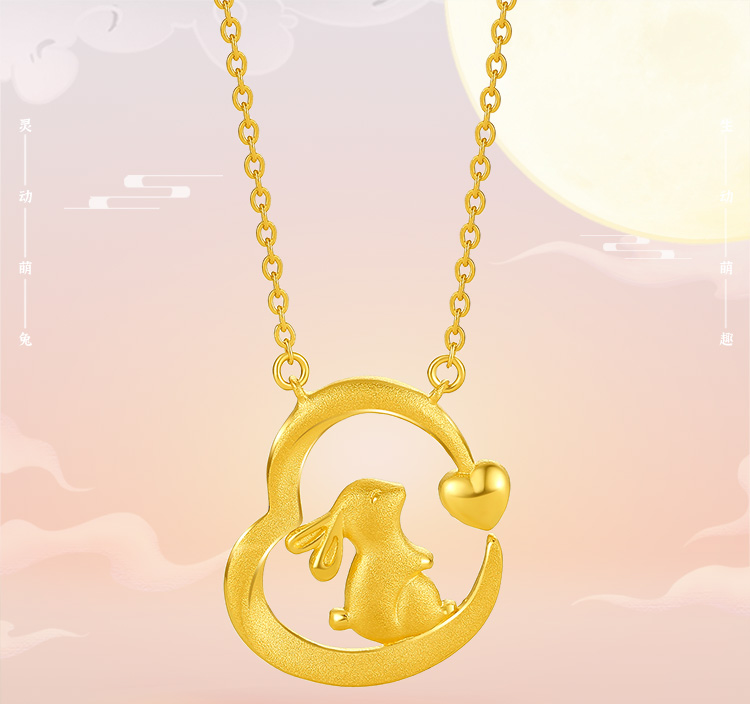 周六福珠宝月神兔黄金吊坠女款定价3D硬金玄月萌兔挂坠珐琅足金