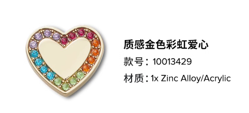 Crocs饰品智必星质感金色彩虹爱心10013429