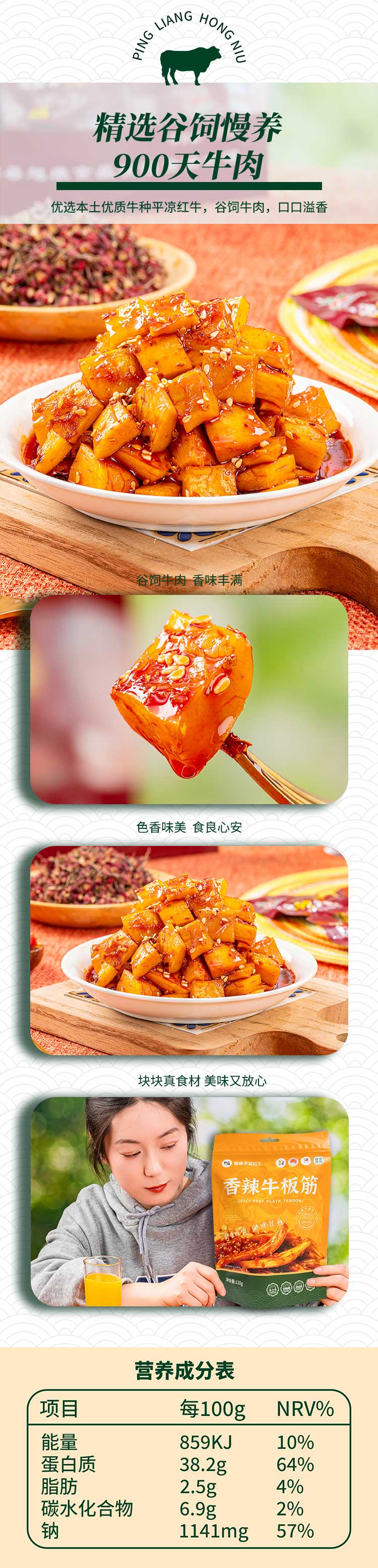 【平凉红牛泾川馆】旭康真空熟食香辣牛板筋120g包邮