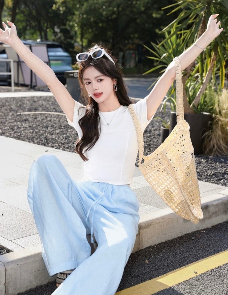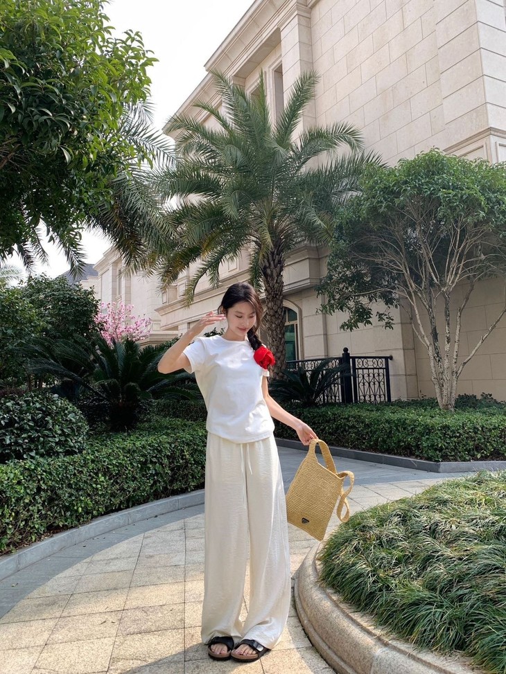基础百搭的阔腿裤型,松紧腰头,形成自然的捏褶,很好的遮住小肚子,做工细节都很不错,完全就是某宝100+的品质!