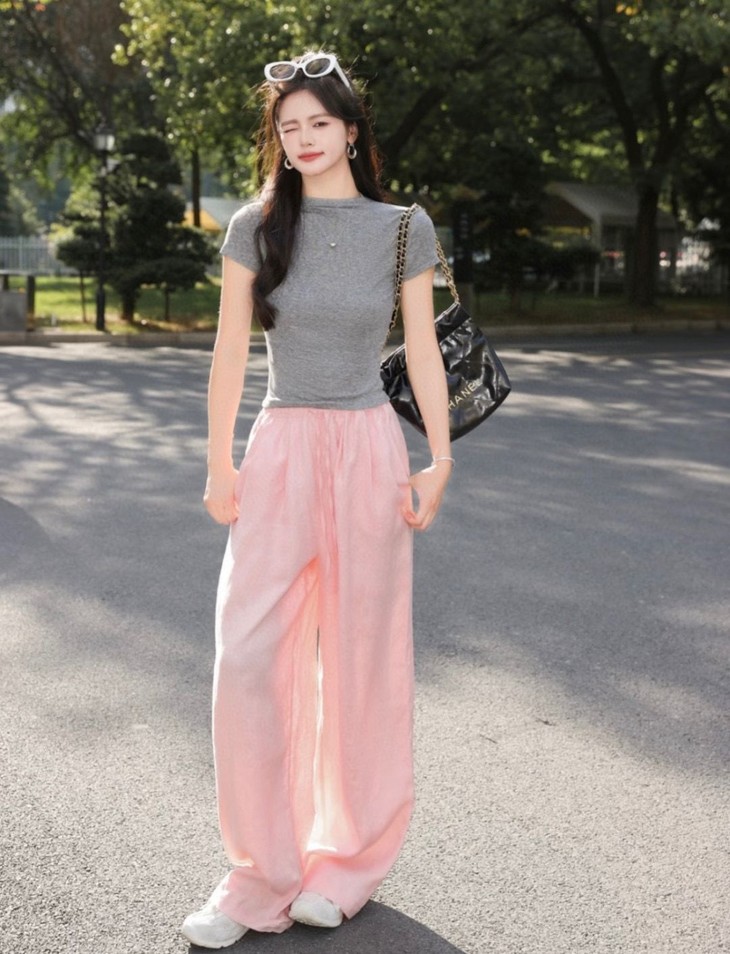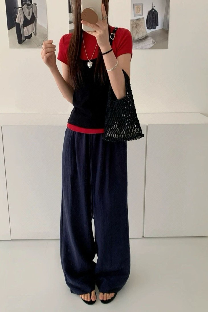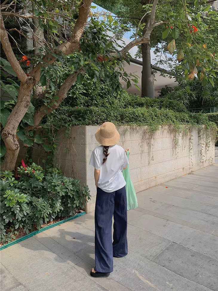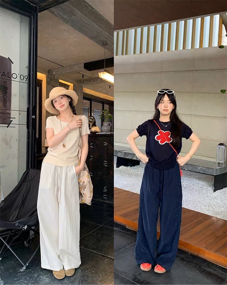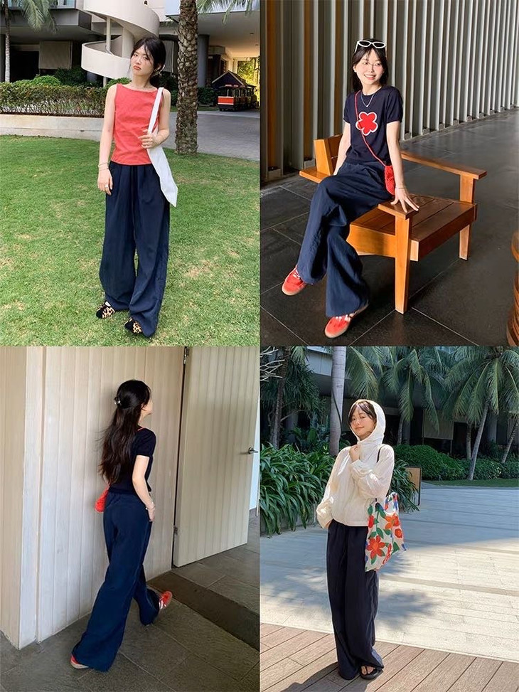 🔹松紧腰头,阔腿裤版型,实穿率高