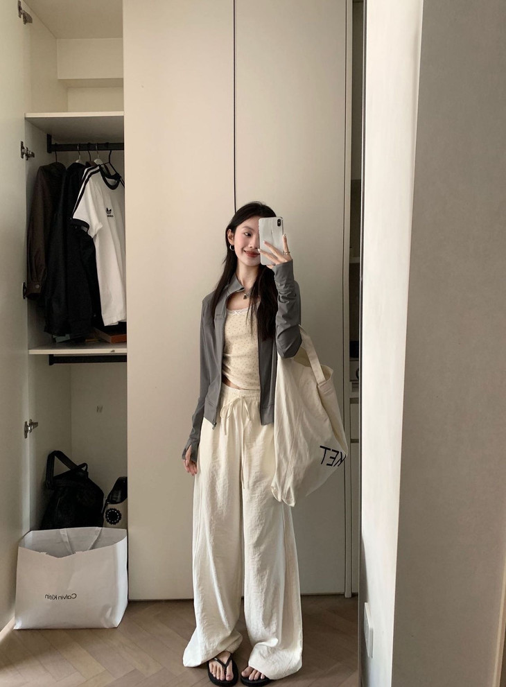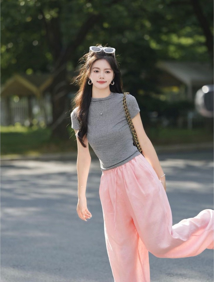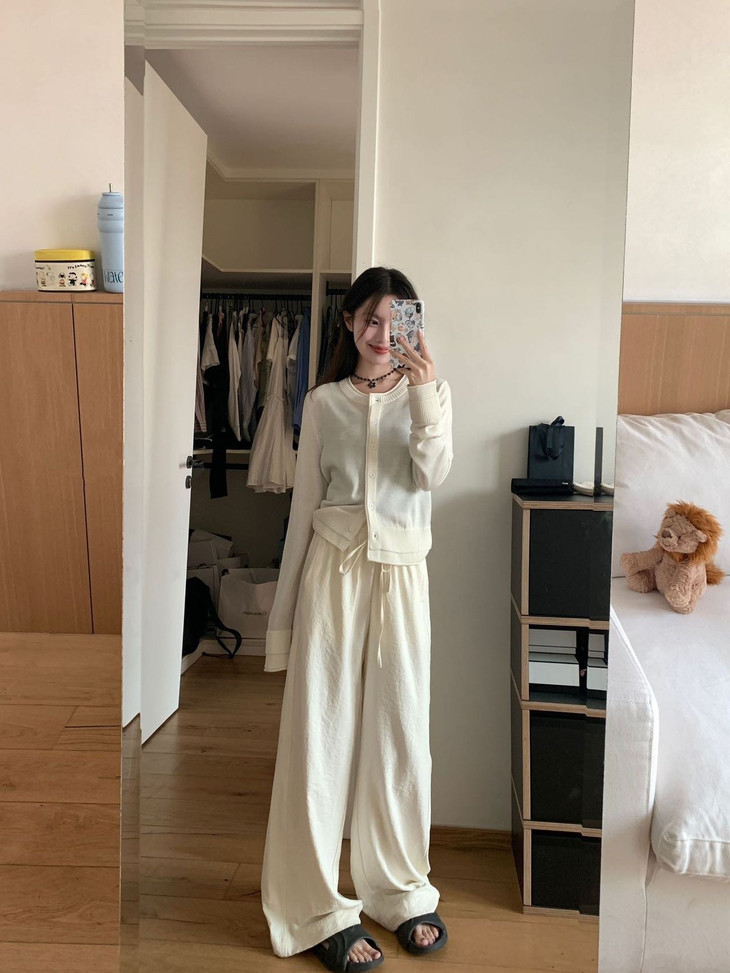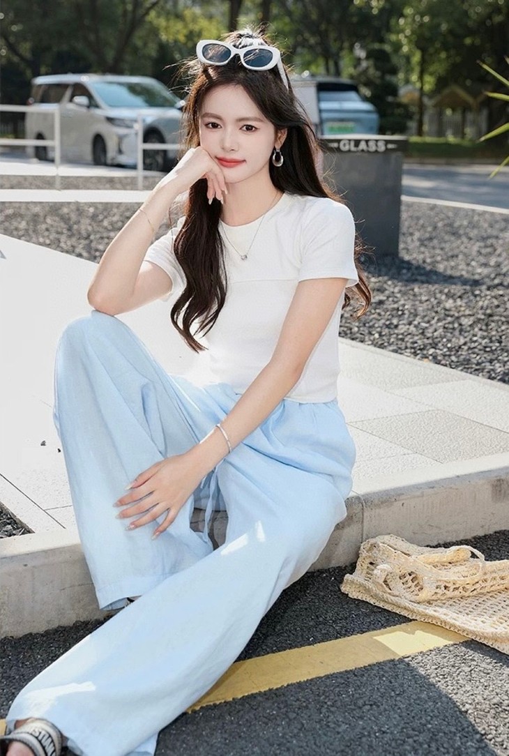 🔹松紧腰头,阔腿裤版型,实穿率高