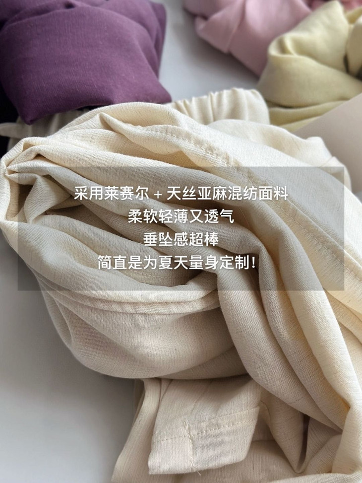 🔹天丝亚麻材质,触感柔软,吸湿透气