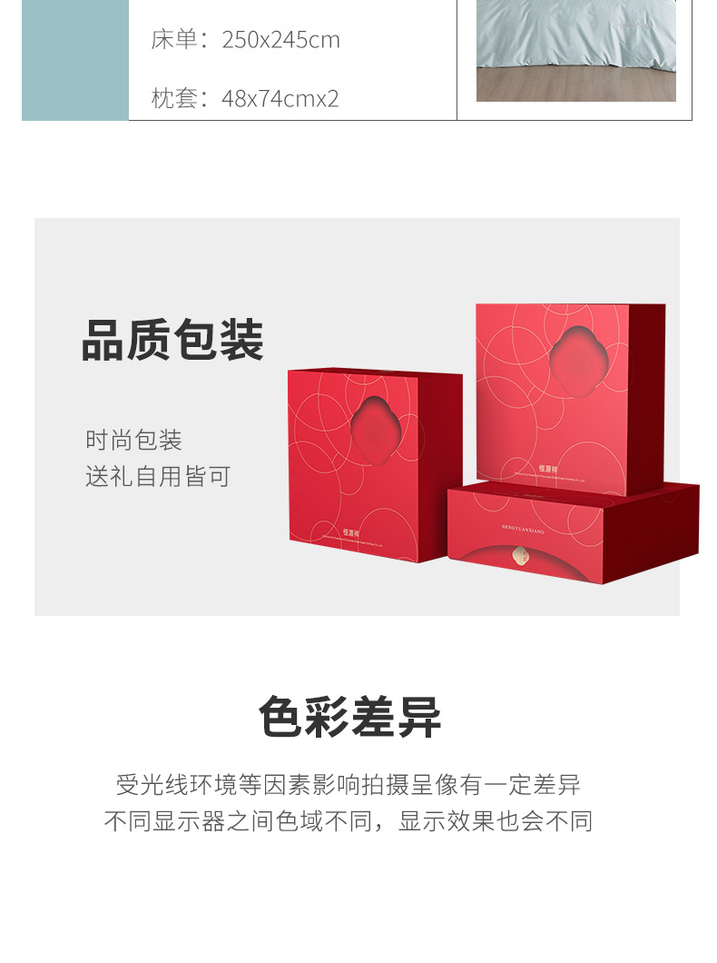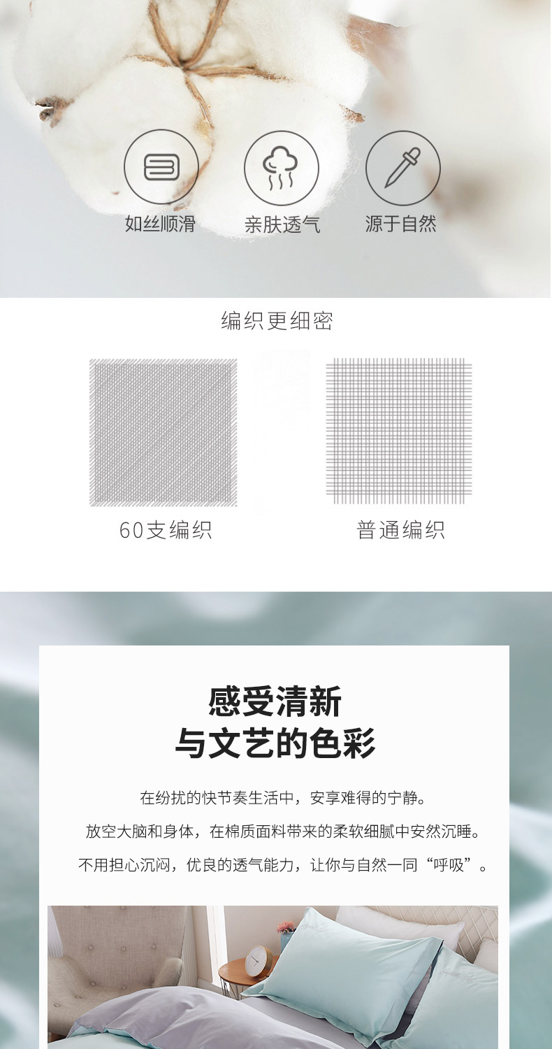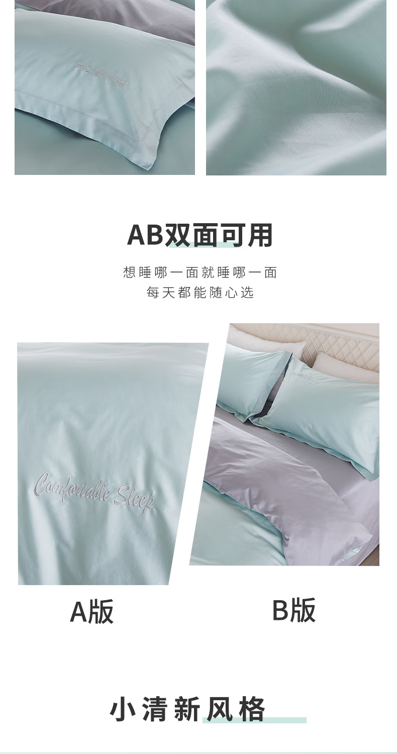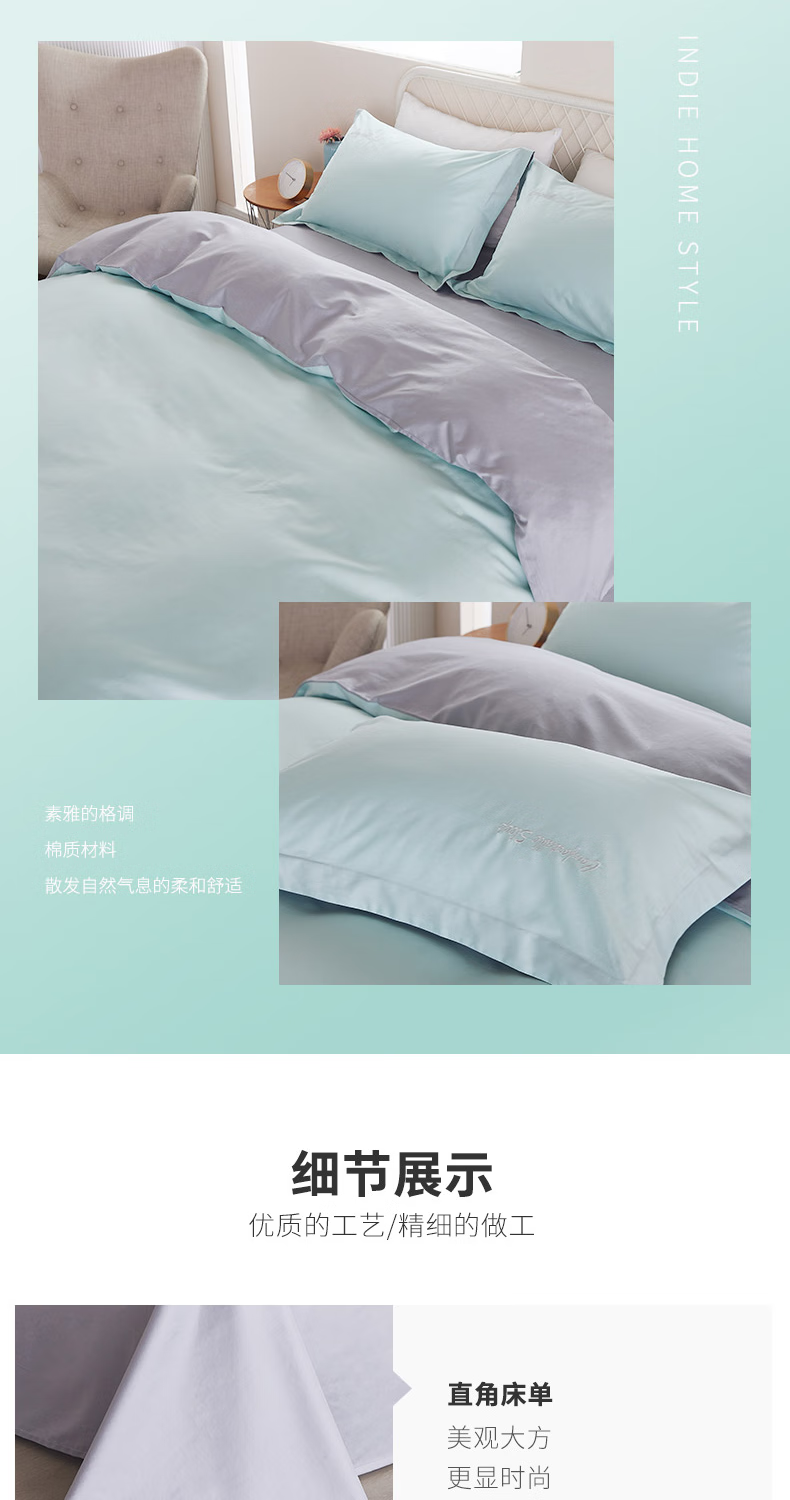 恒源祥60支长绒棉四件套简约纯色刺绣套件高端礼盒装 牛油果绿200*230cm