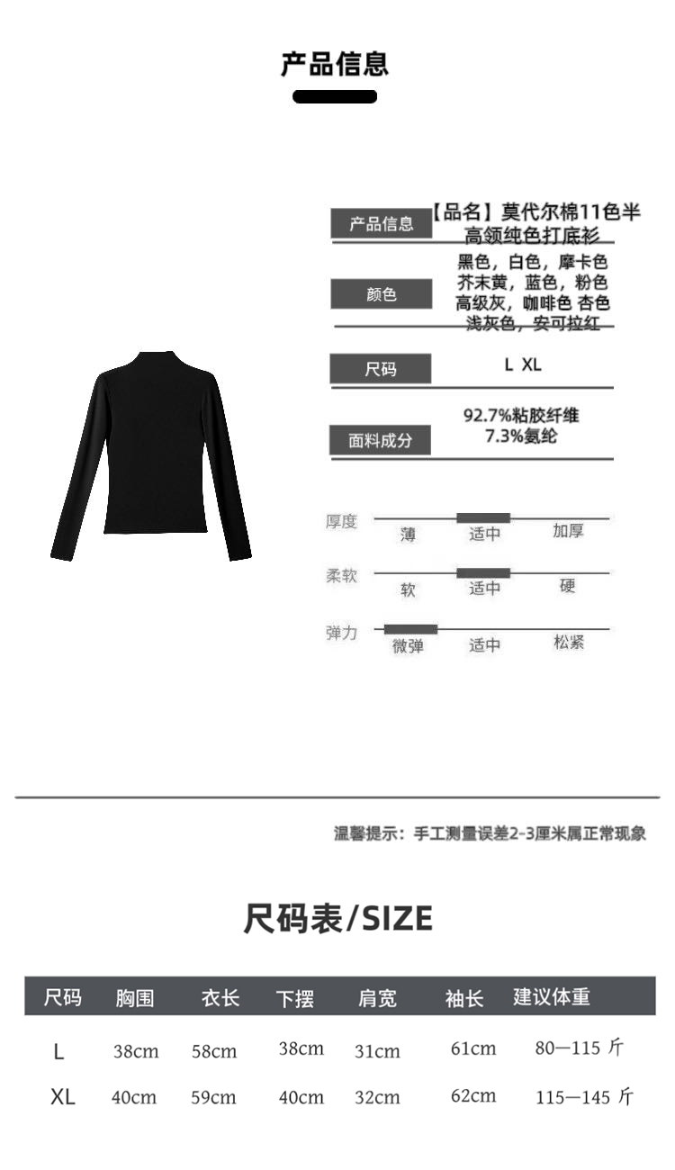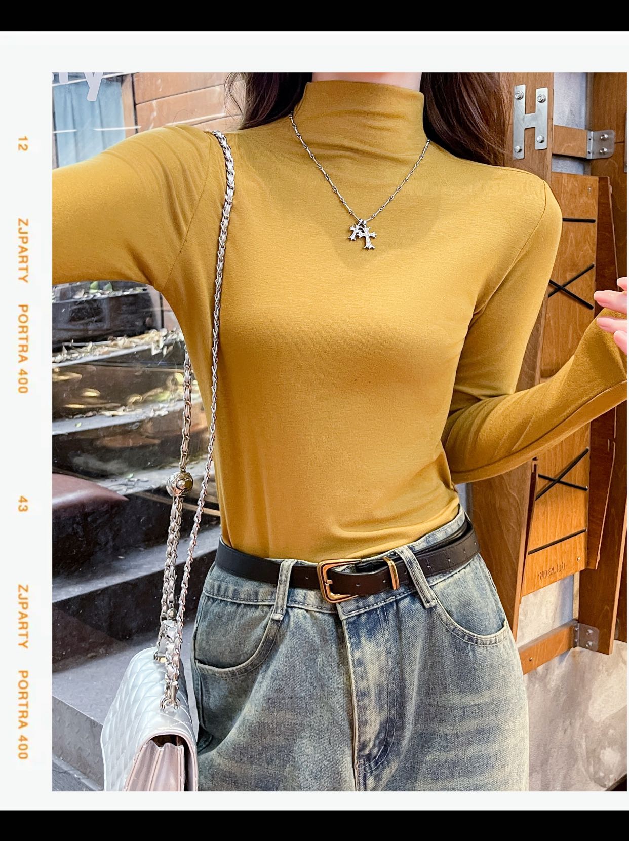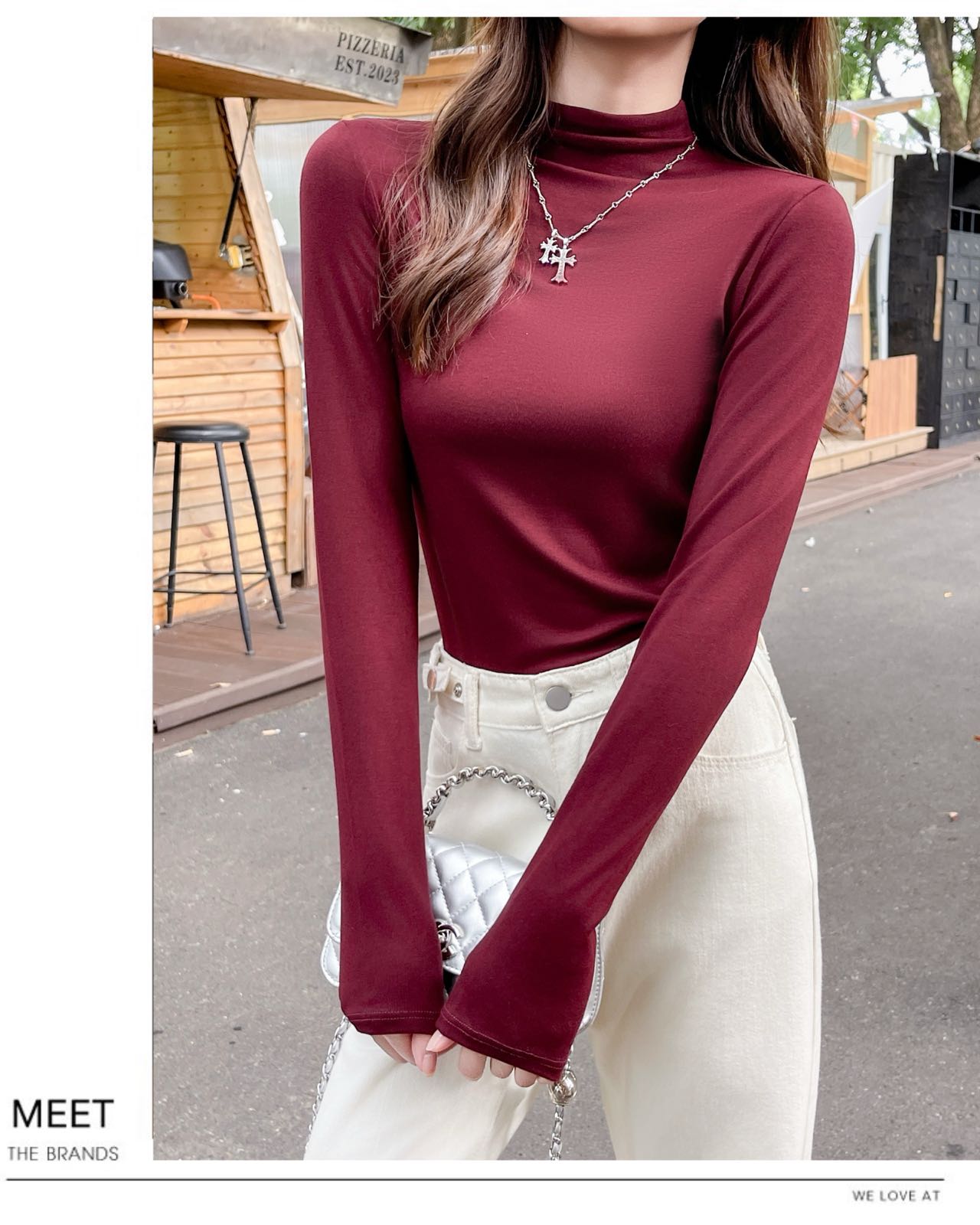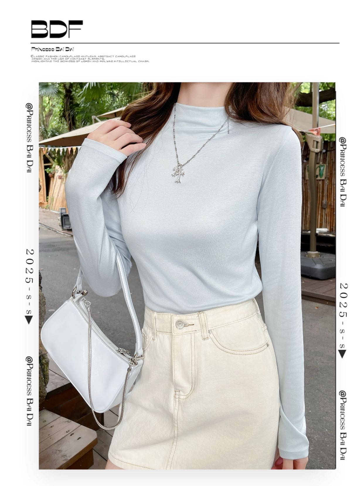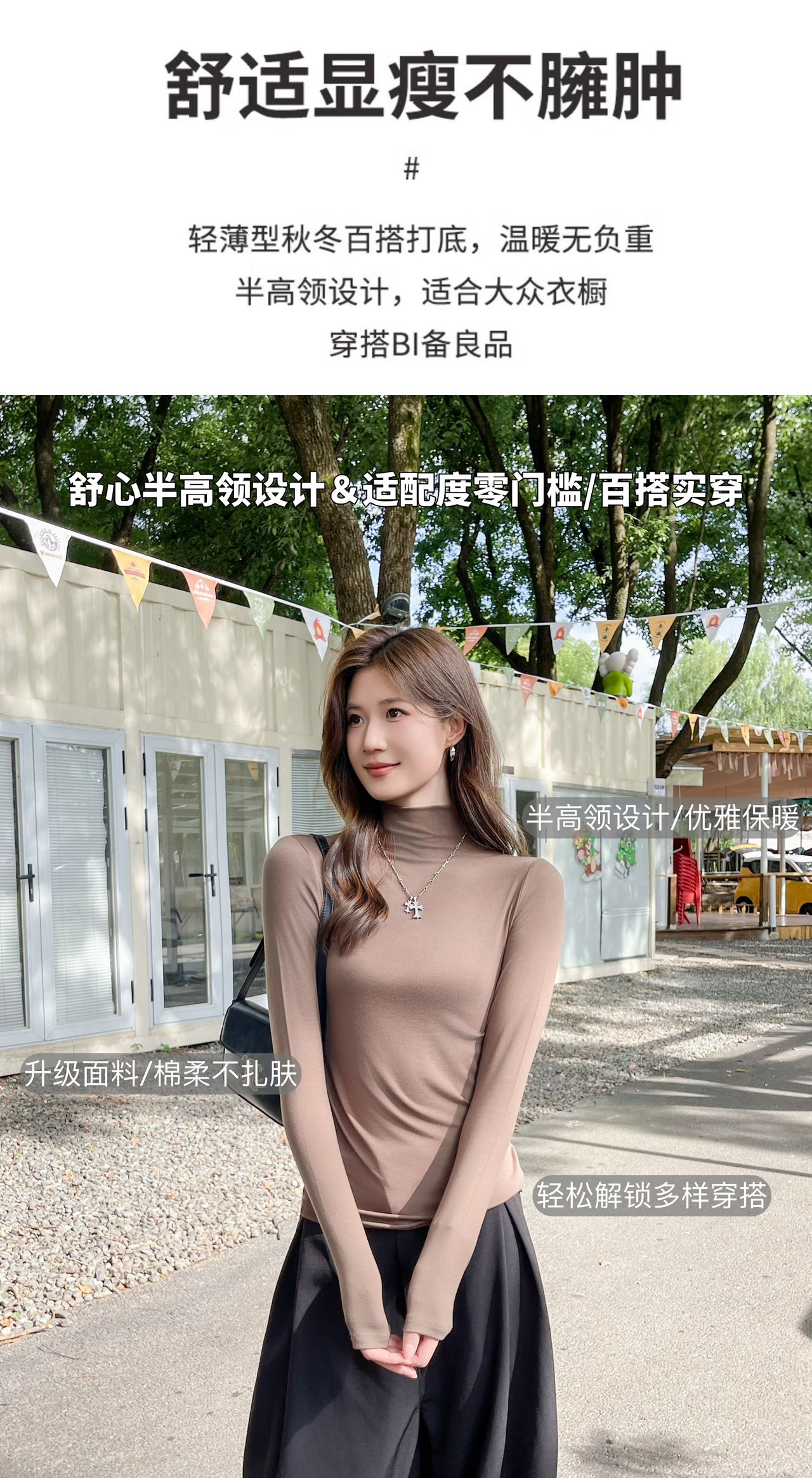 莫代尔棉半高领打底衫女2025秋冬新款11色纯色修身内搭针织衫 百搭显瘦
