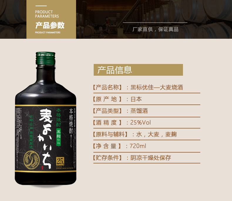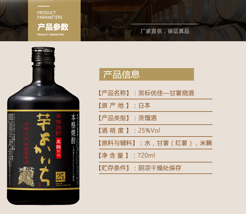 原装进口 烧酒 宝酒造黑标优佳一甘薯烧酒大麦烧酒720ml LFYC