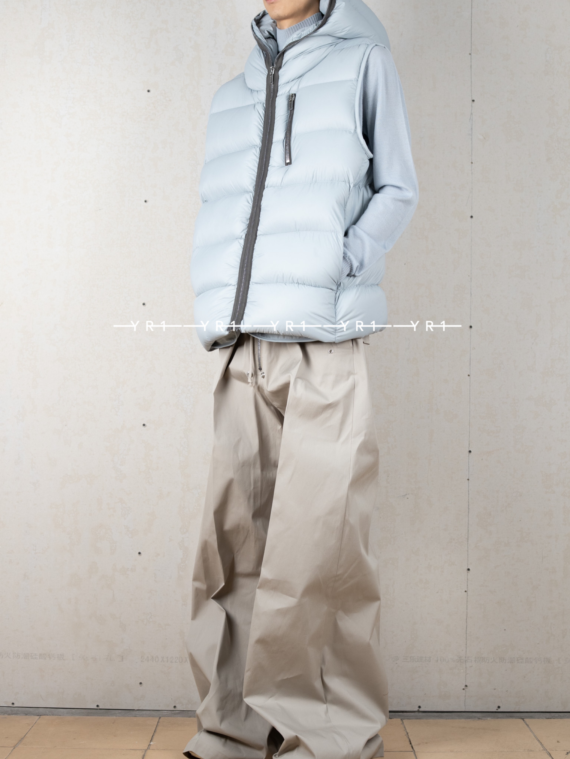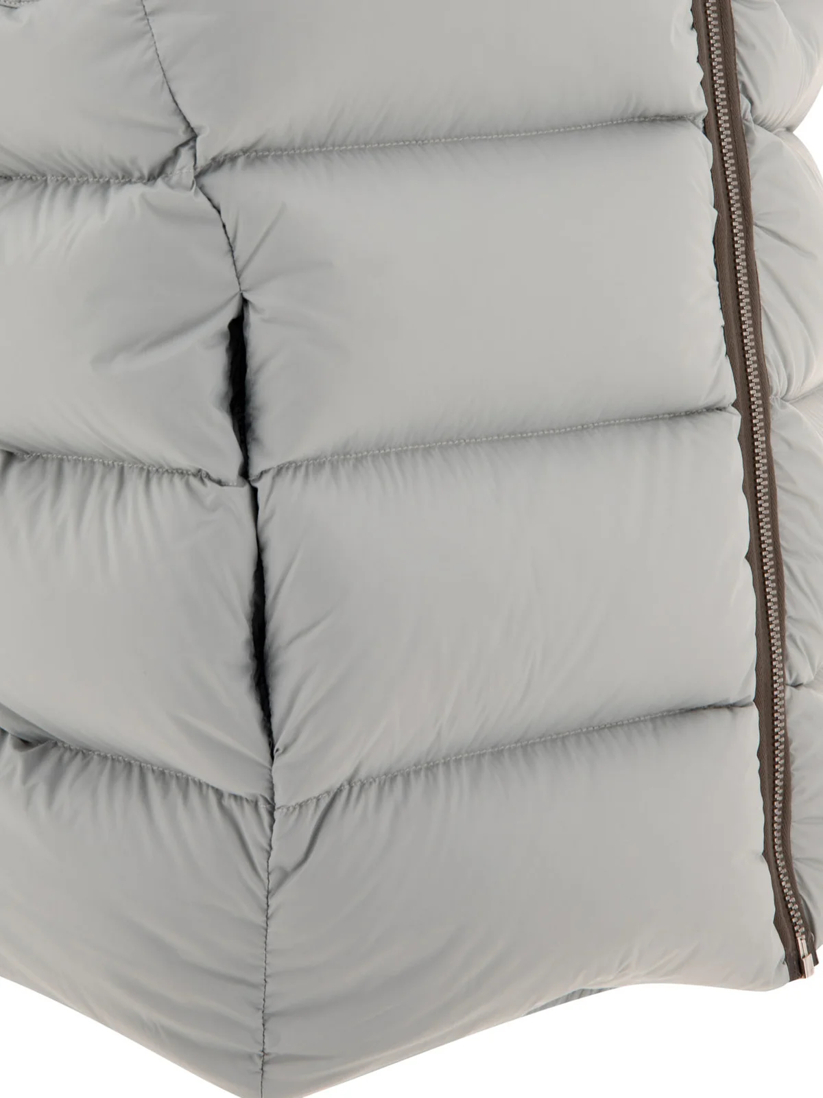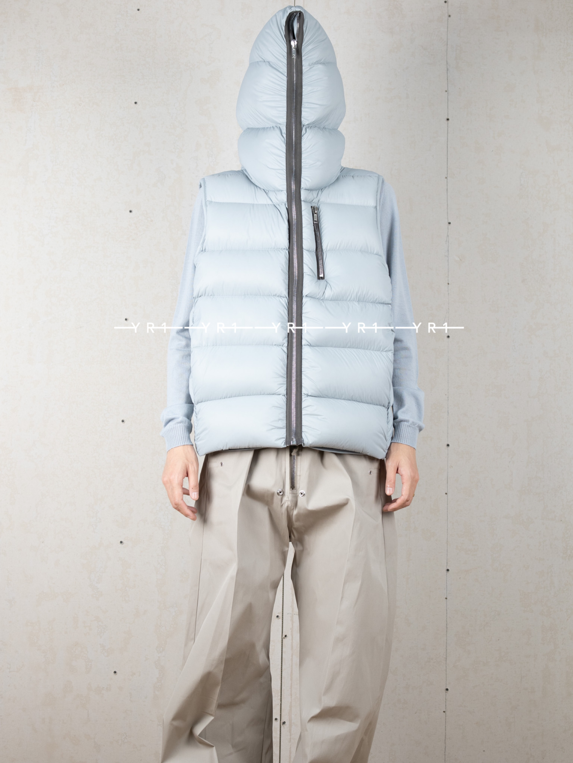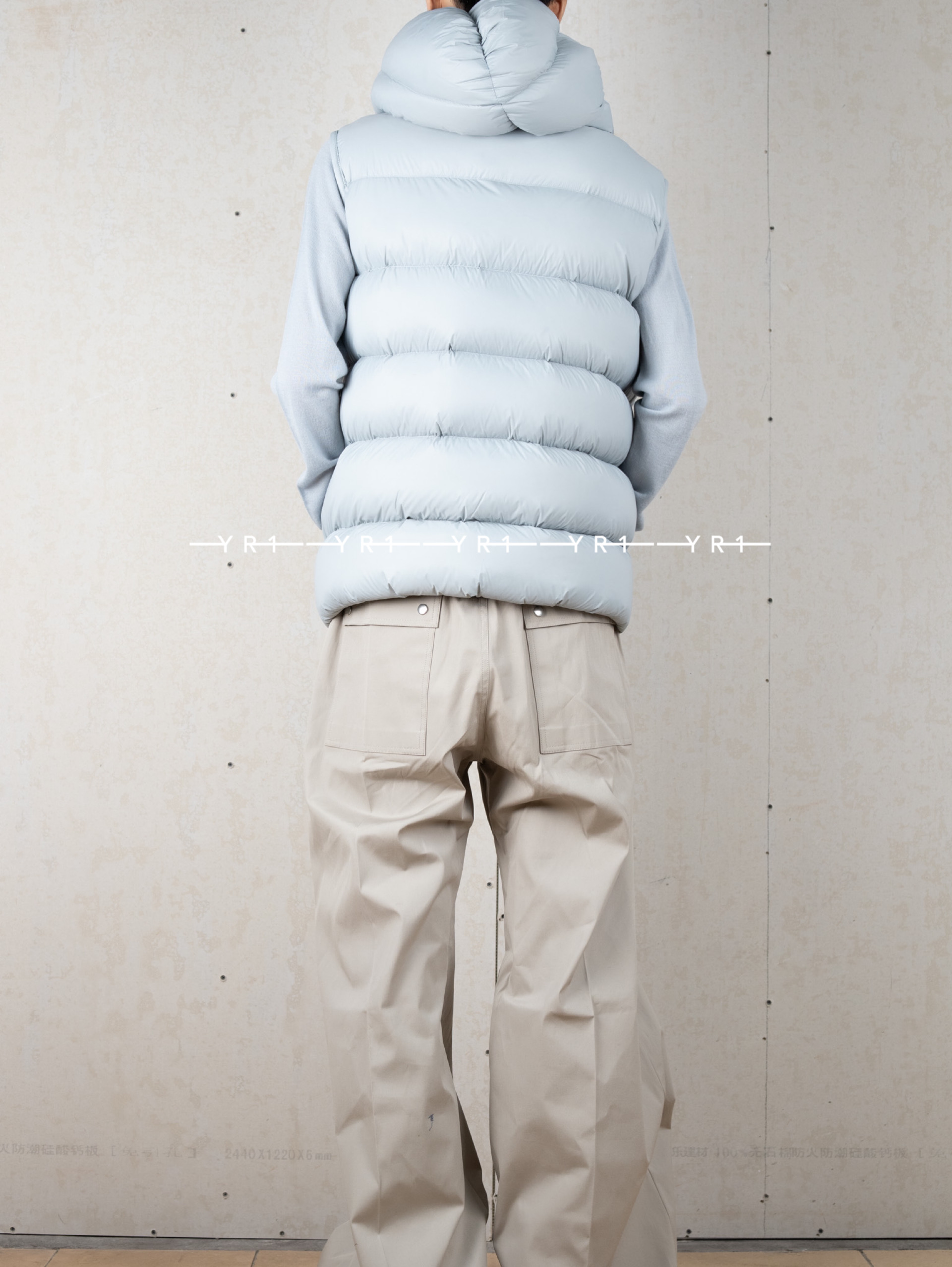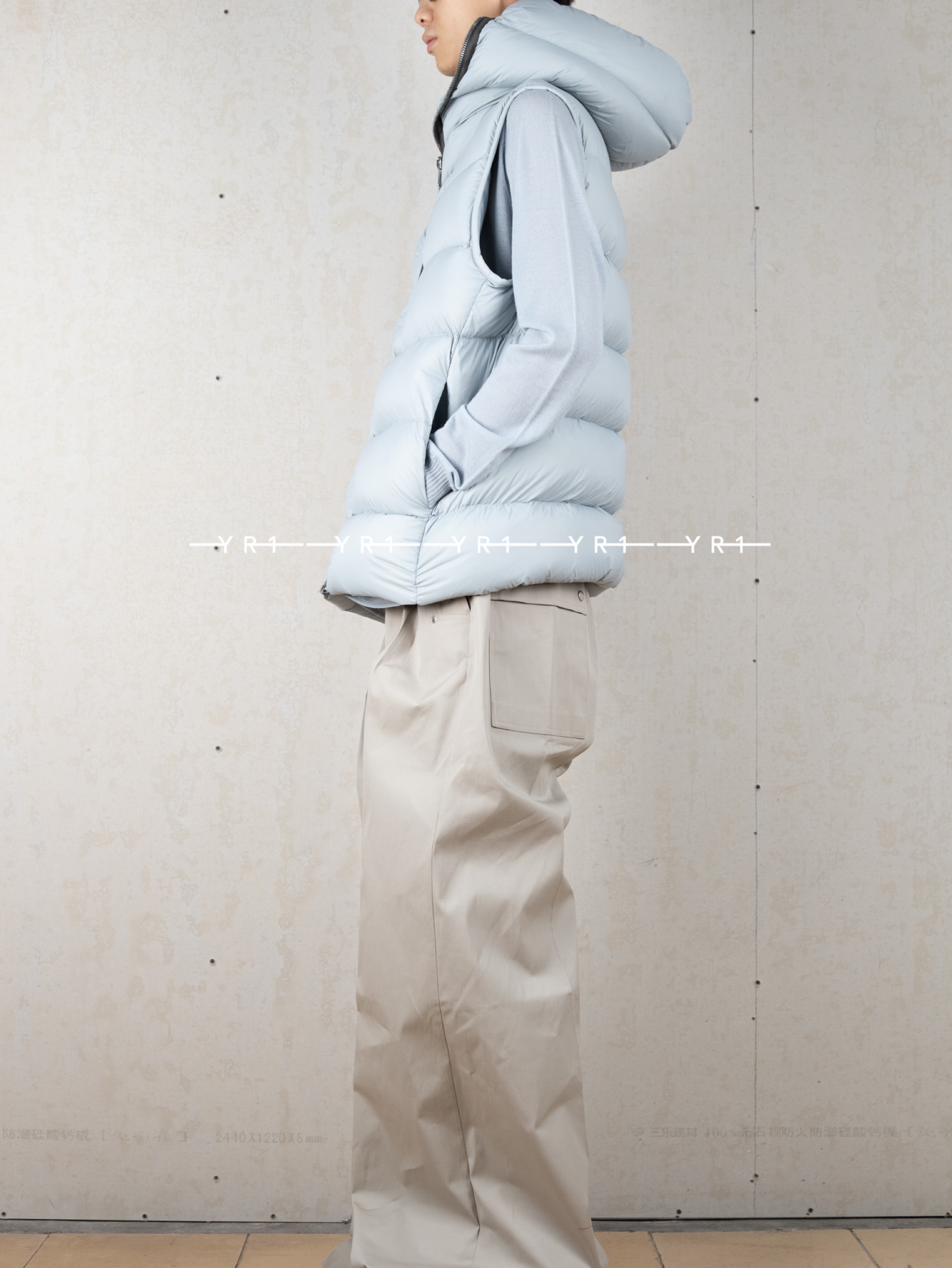 这款密封背心无袖,长度及臀,采用厚重羽绒材料和水平缝线设计。