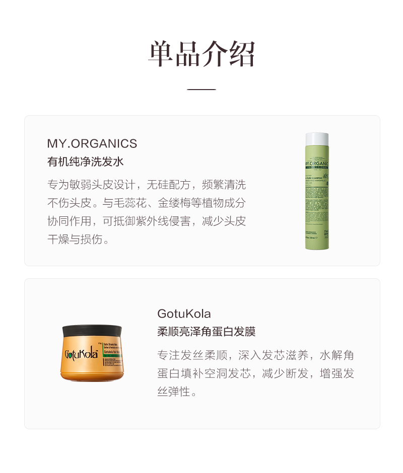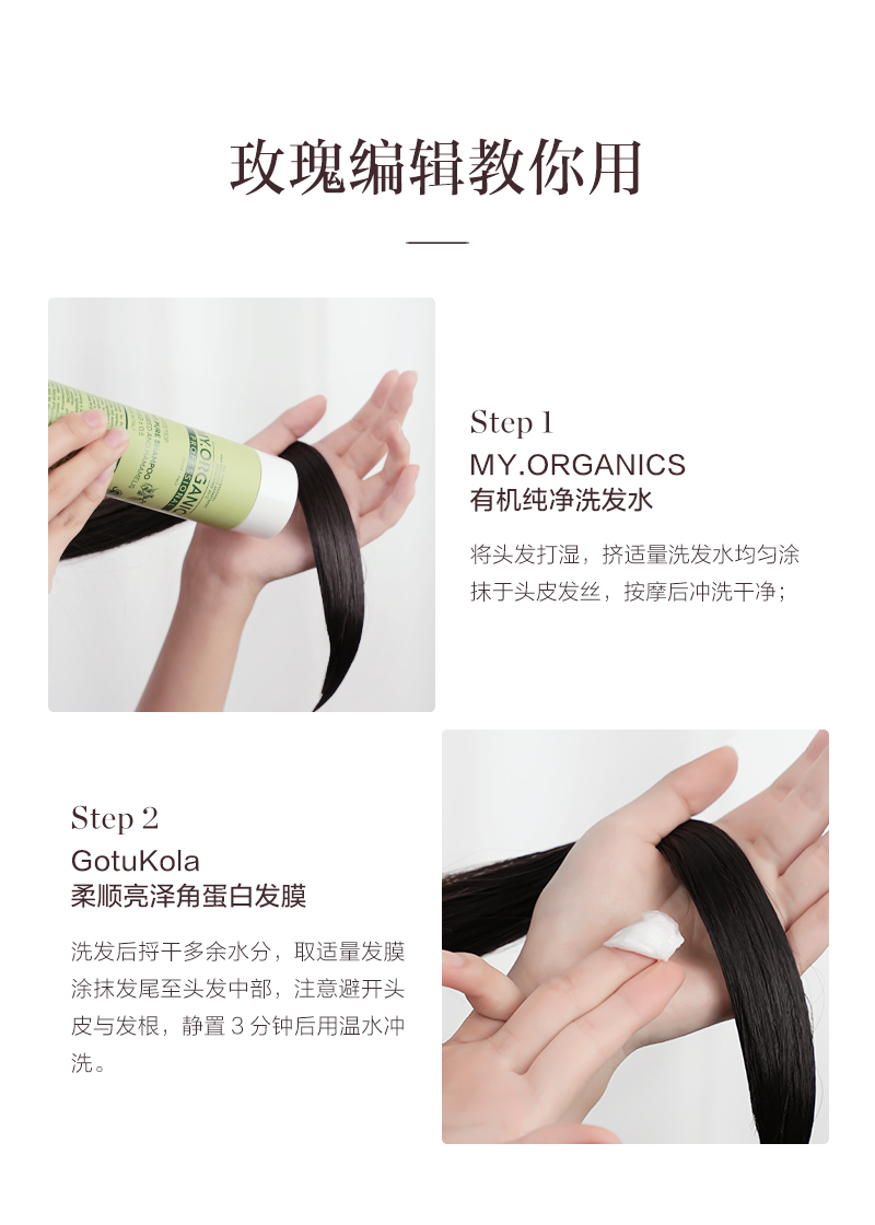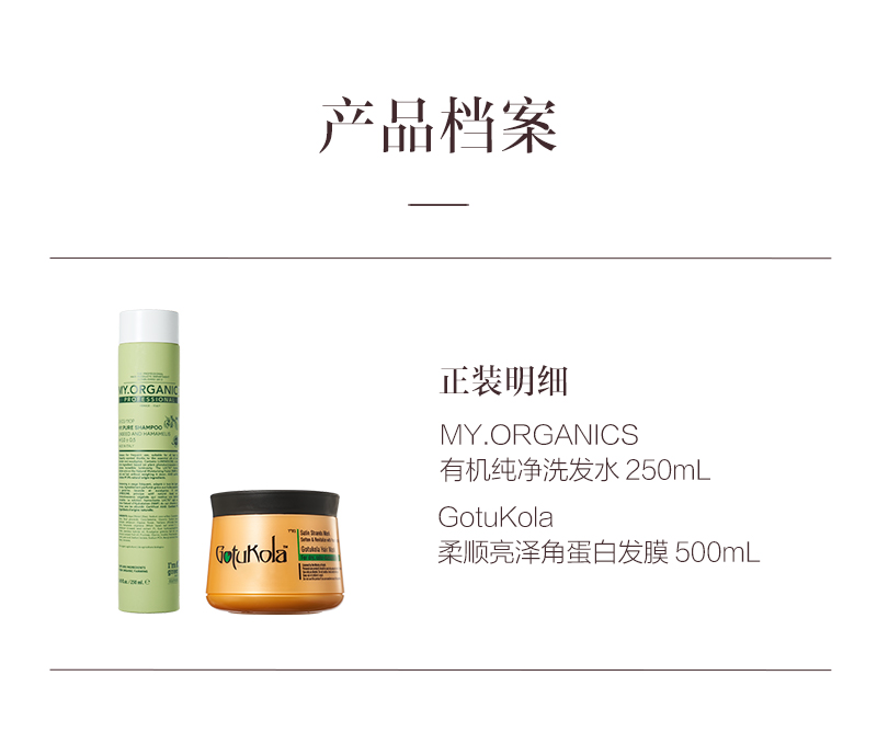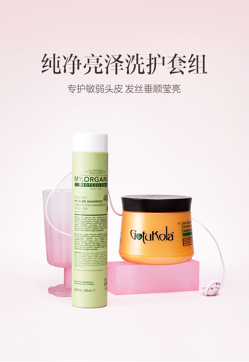 保税直发 纯净亮泽洗护套组(MY.ORGANICS 有机纯净洗发水 250mL+GotuKola 柔顺亮泽角蛋白发膜 500mL)