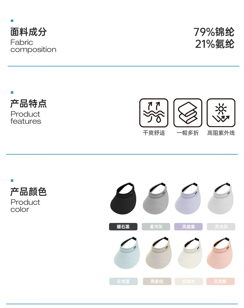 VVC 冰晶新款三折防晒帽太阳帽遮阳帽