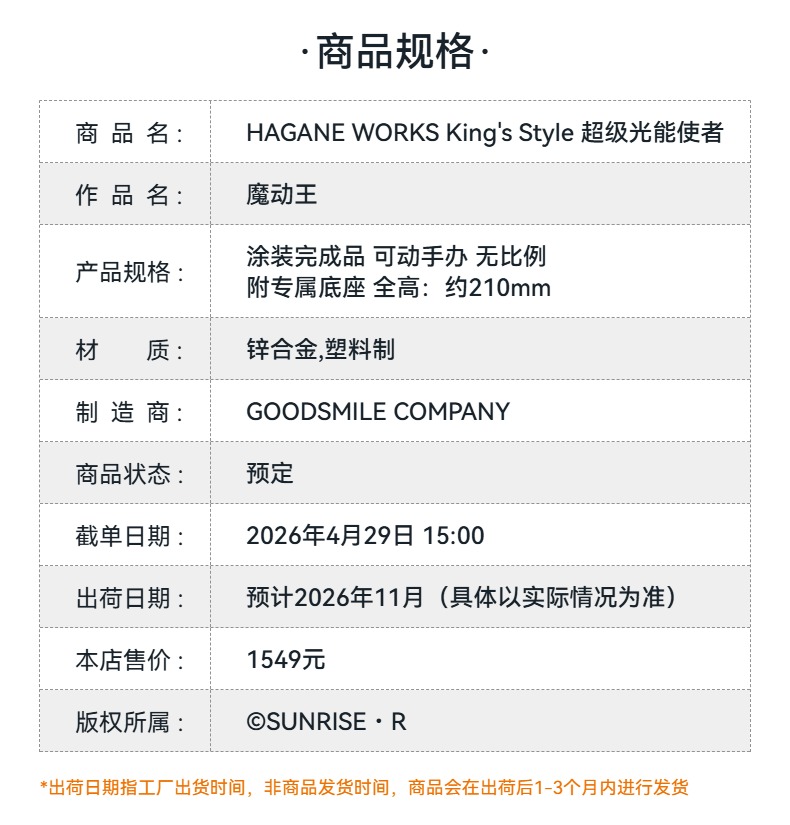 【GSC预售定金】HAGANE WORKS King's Style 超级光能使者 魔动王