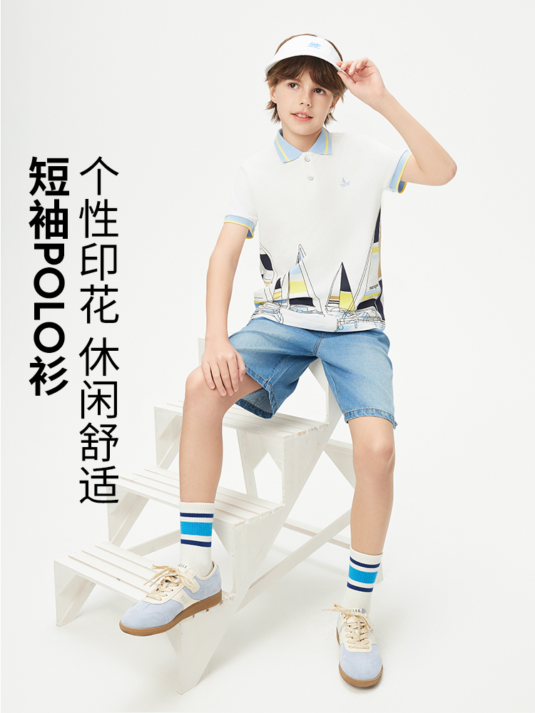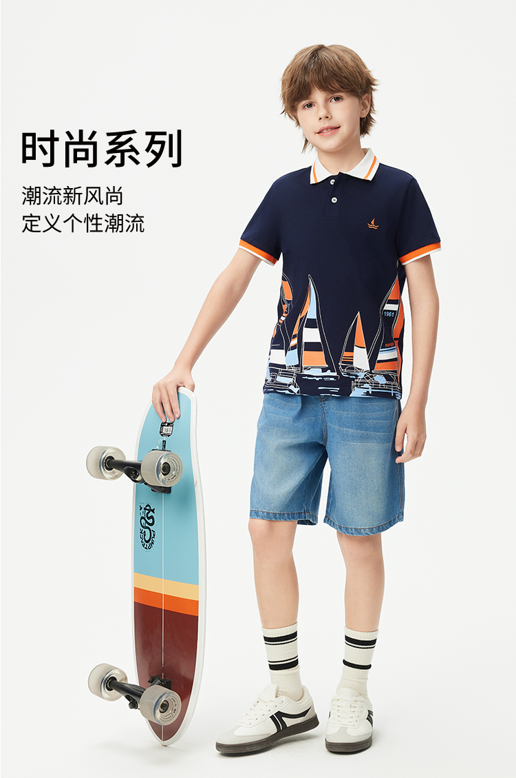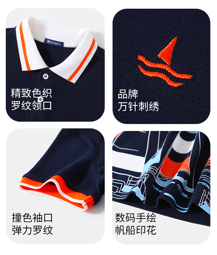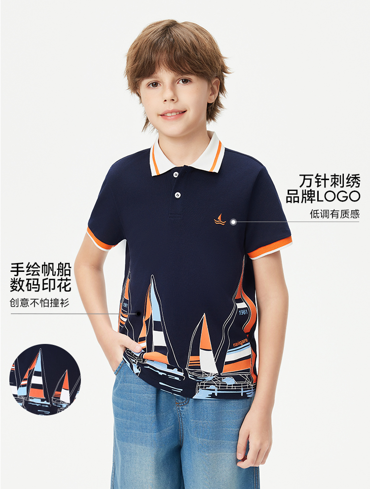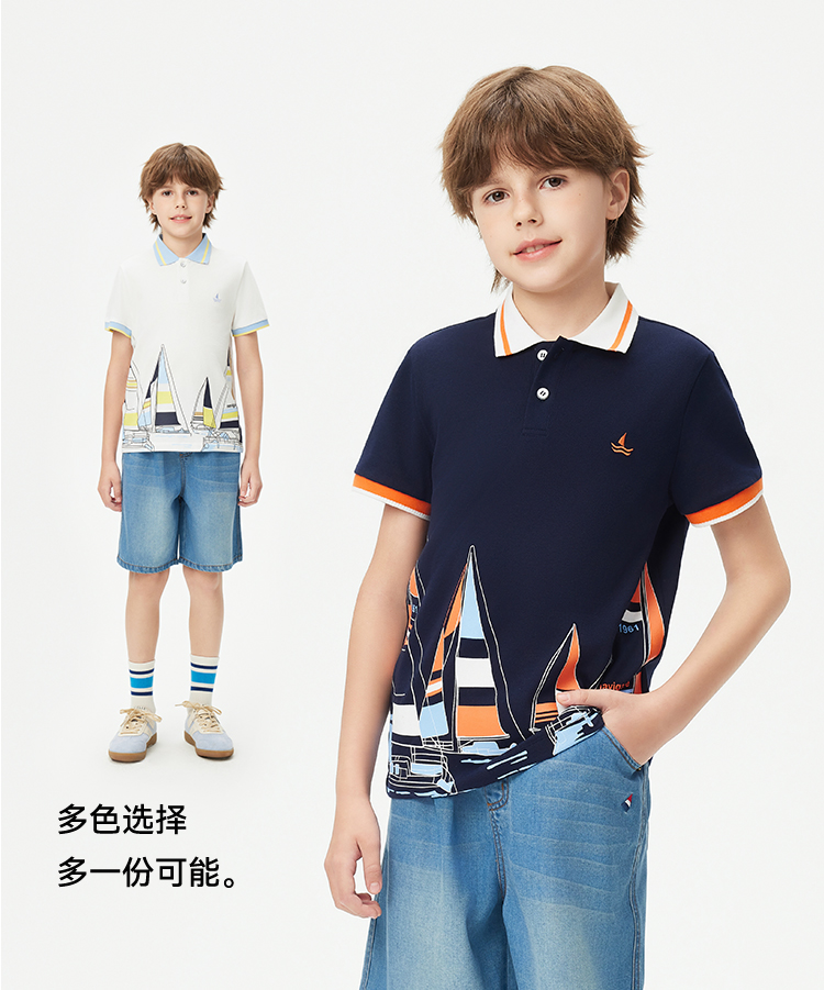 【纳维凯尔】【120-165】Navigare意大利小帆船男童夏季短袖POLO衫