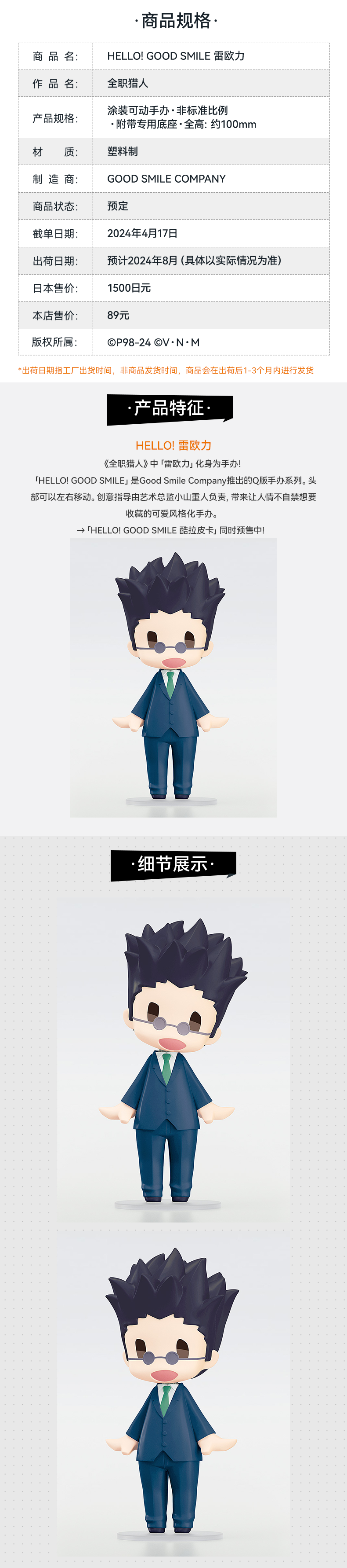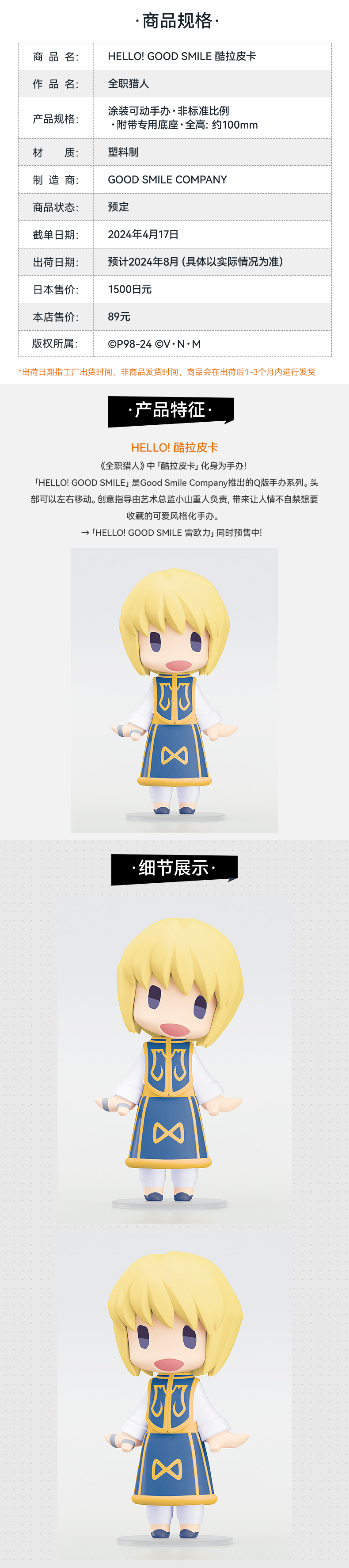 【GSC现货】HELLO! GOOD SMILE 酷拉皮卡/雷欧力 全职猎人