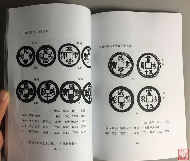 《新疆红钱价格图录》(影印资料)研究新疆钱币的好书!声明:古泉书馆鉴定,非正版资料,仅限学术交流!成本价影印资料,服务泉友。对作者的辛勤付出表示敬意!无法联系到作者,如有侵权可与我们联系:13520521077,我们将立即下架。