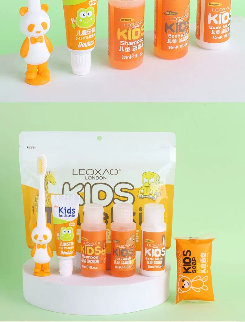 leoxao儿童洗护旅行套装洗发水沐浴露牙刷洗漱研学一次性用品便携