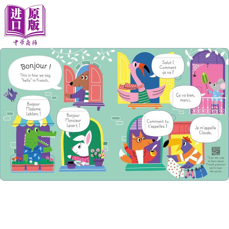 这本互动翻页书将帮助孩子们学习适用于各种场合的简单法语会话。主题包括问候和告别、情感表达以及日常习惯。配有音频链接,方便孩子们聆听正确的发音。