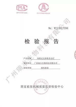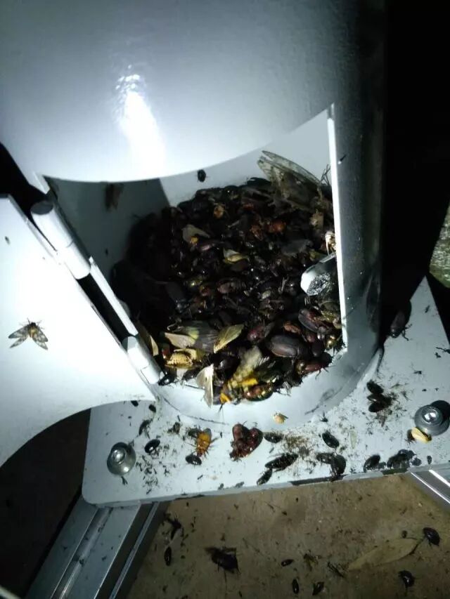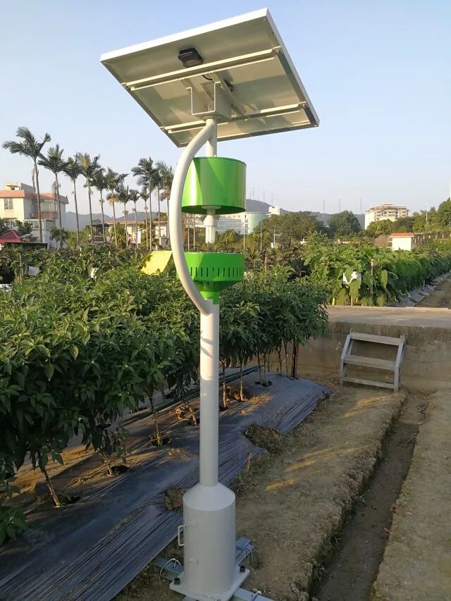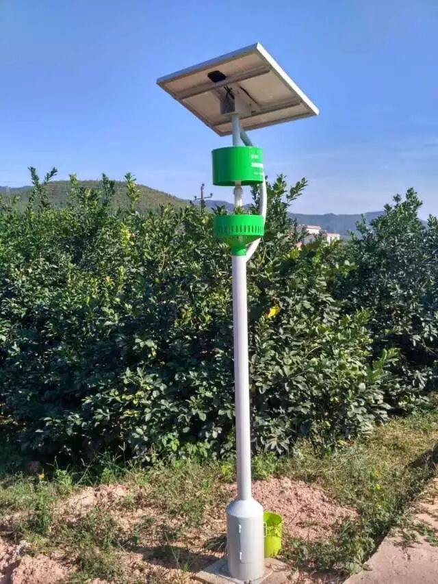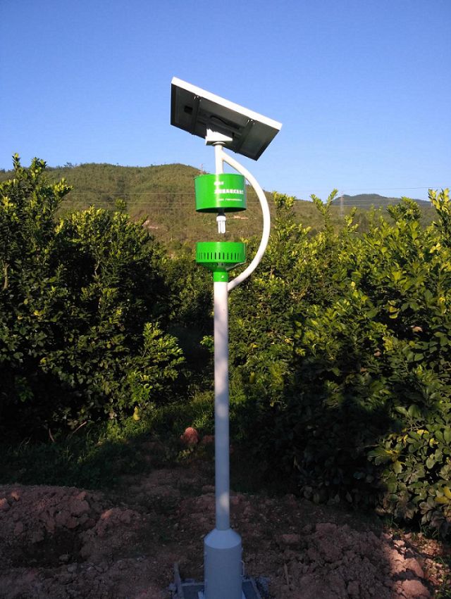利用天然能源替代化学农药杀虫的绿色物理杀虫设备,集光诱技术、风吸技术和数控技术于一体。利用昆虫的趋光性引诱害虫,在利用风扇气流将害虫吸进集虫器中,兼具引诱和主动吸捕进行高效捕虫。