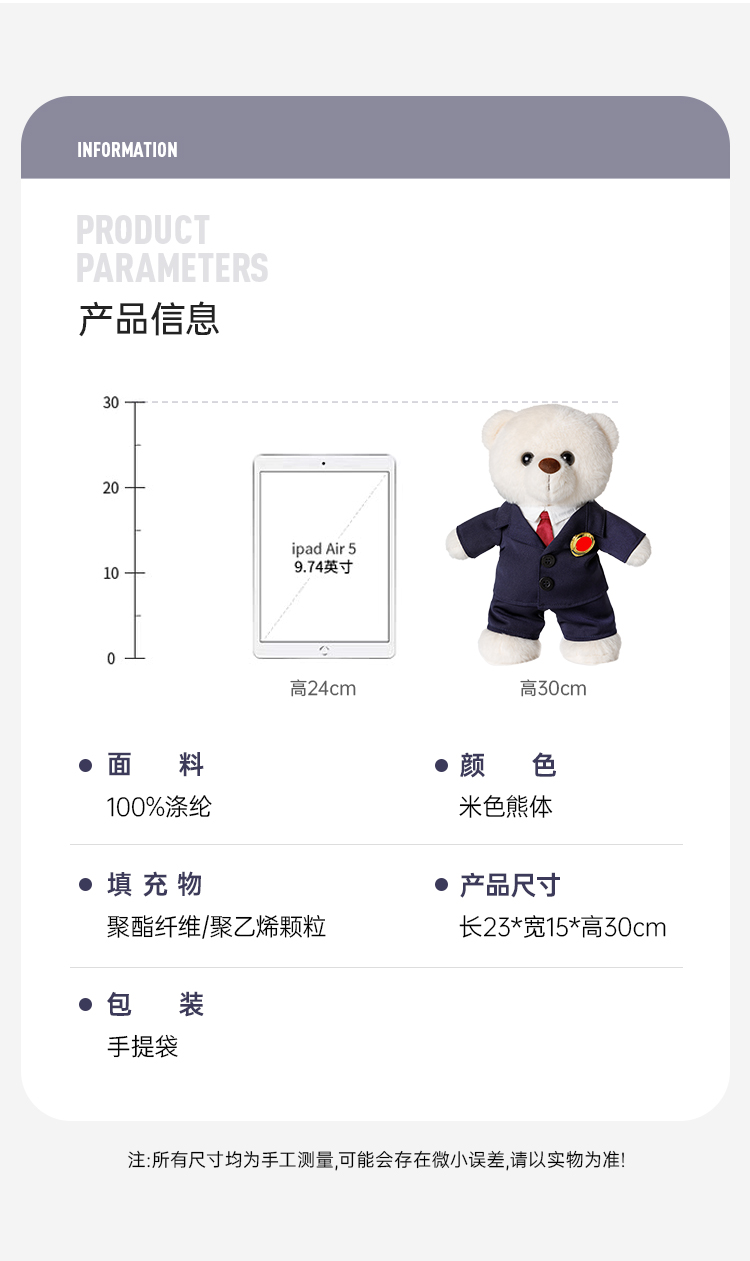 【实付满199送钥匙扣】【检察官站姿熊】可定制创意毛绒职业小熊公仔儿童玩具服装可脱送礼礼物