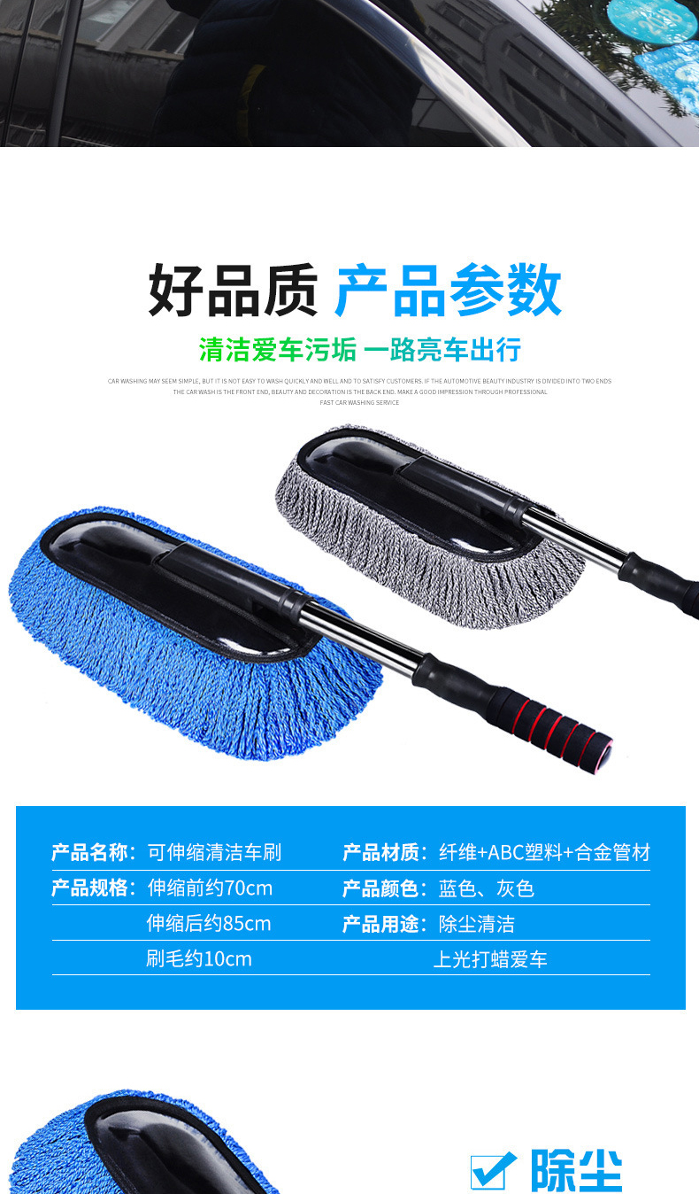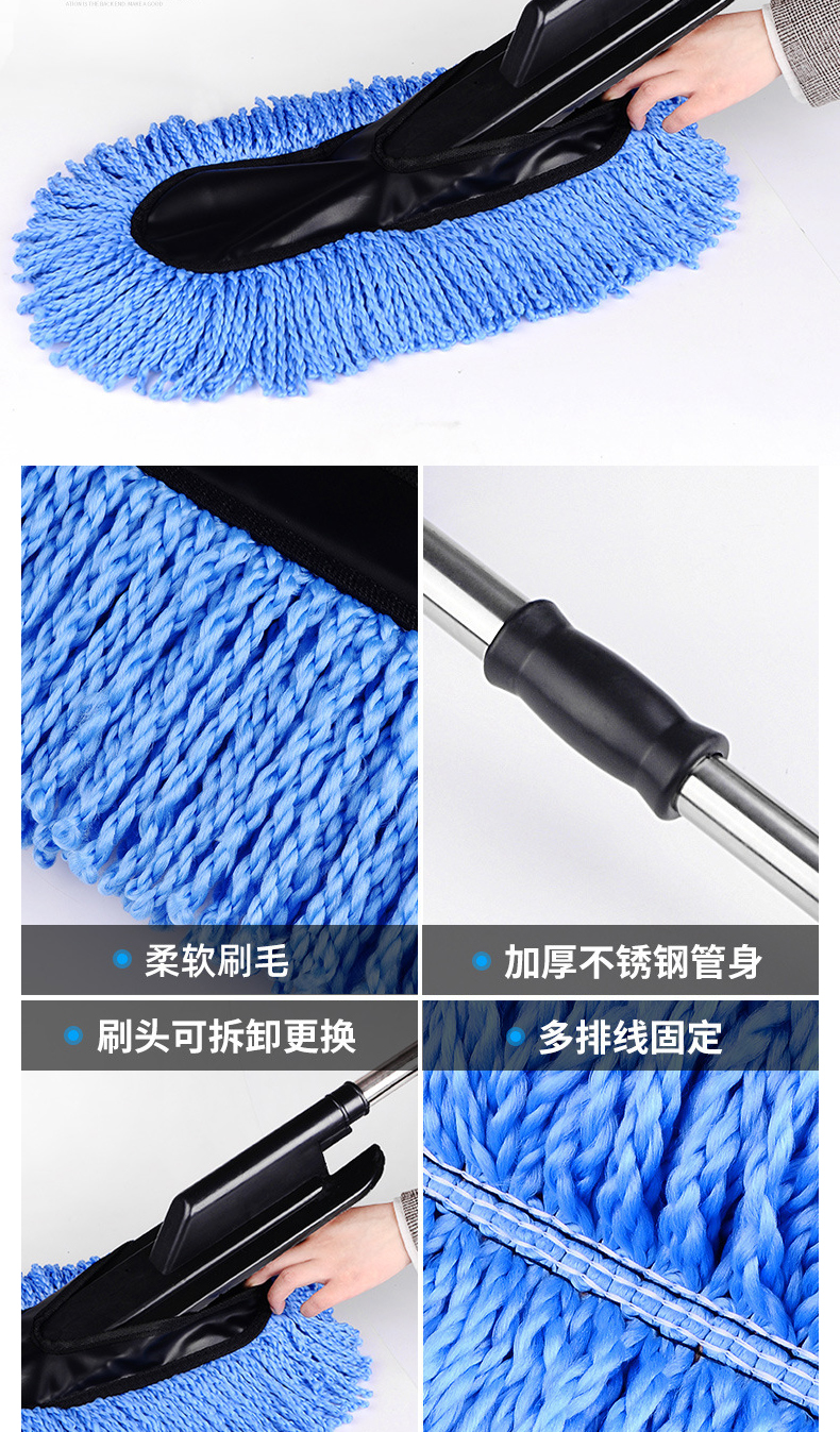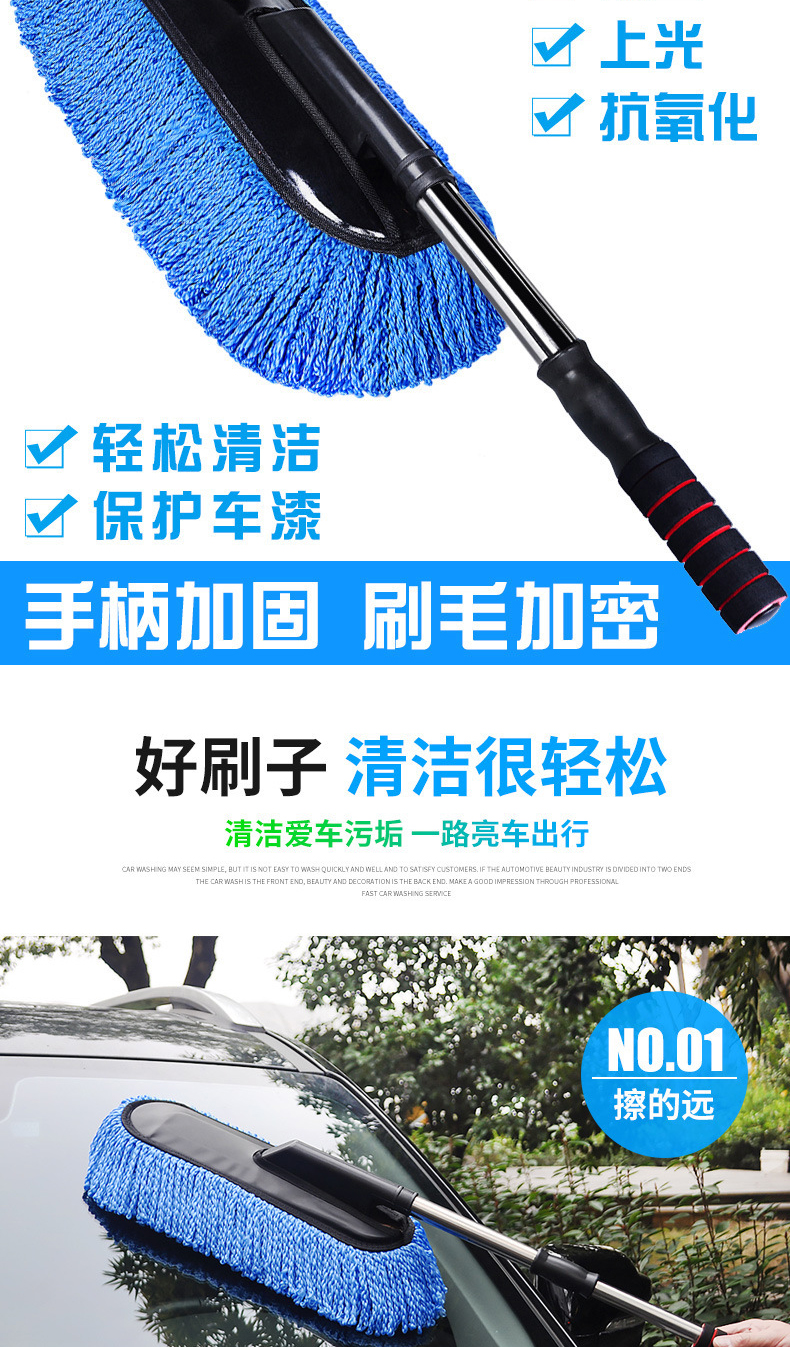 【品牌优选】洗车拖把长柄伸缩汽车除尘多功能车载蜡拖清洁擦车工具用品